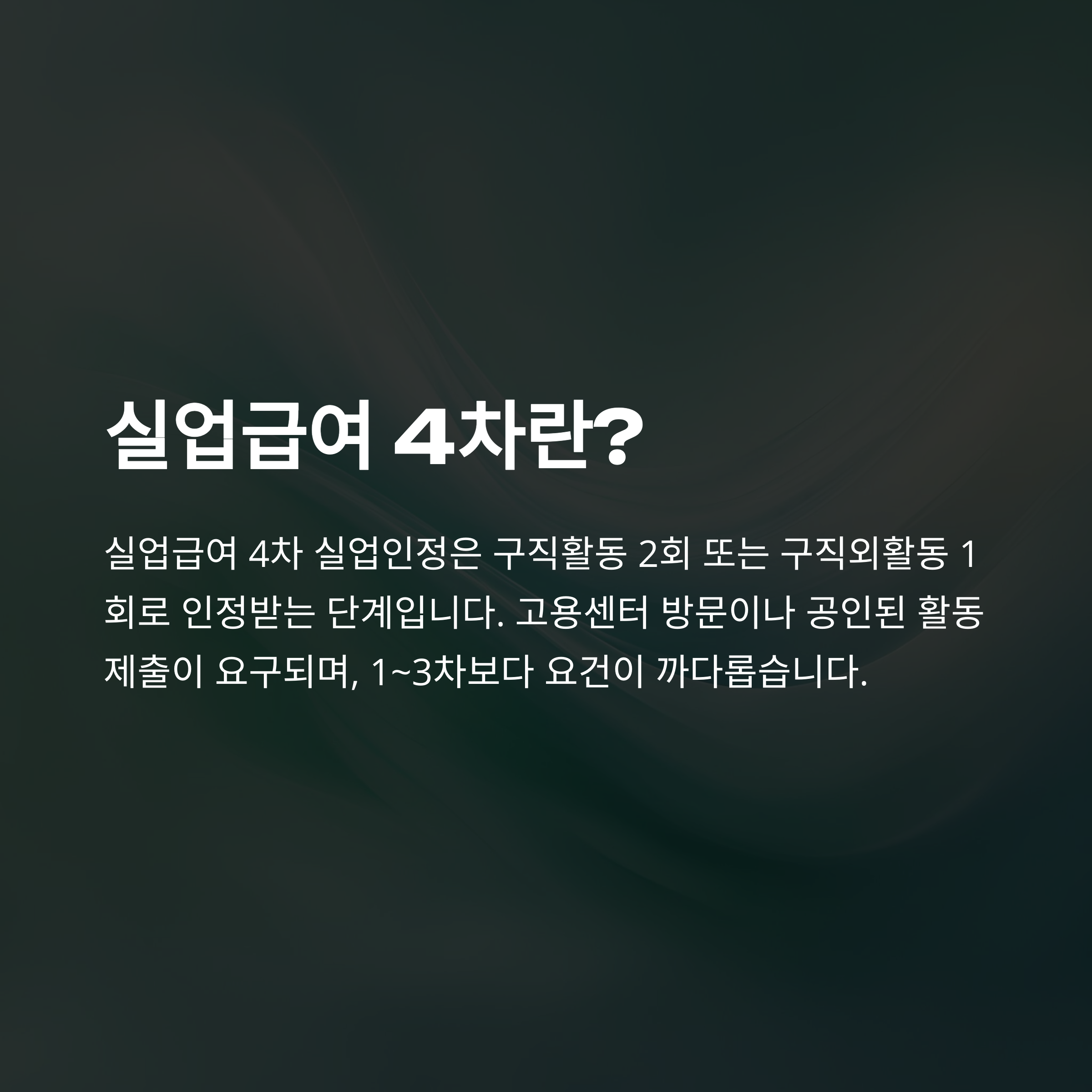 실업급여 4차 실업인정 구직외활동부터 입금일까지 완벽정리 – 온라인특강, 심리검사, 방문 후기 포함실업급여 4차 실업인정, 구직외활동, 심리검사, 취업특강, 온라인특강, 방문 출석 등 모든 과정을 경험 기반으로 상세히 정리했습니다. 이 글 하나로 4차 실업급여 완벽하게 대비하세요. 실업급여 4차 인정 바로가기 목차 열기/접기실업급여 4차란?4차 실업인정 준비물구직외활동이란?4차 구직외활동 방법4차 구직활동 체크리스트4차 방문 및 출석 절차4차 심리검사 경험기4차 온라인특강 후기4차 취업특강 핵심 내용4차 실업급여 입금 시기4차 실업급여 금액 계산4차 실업인정 유의사항고용센터 실 방문 후기온라인 제출 vs 방문 제출실업급여 4차 후기 정리고용보험 공식 자료 확인법4차까지의 구직활동 요약입금 지연시 대응 방..