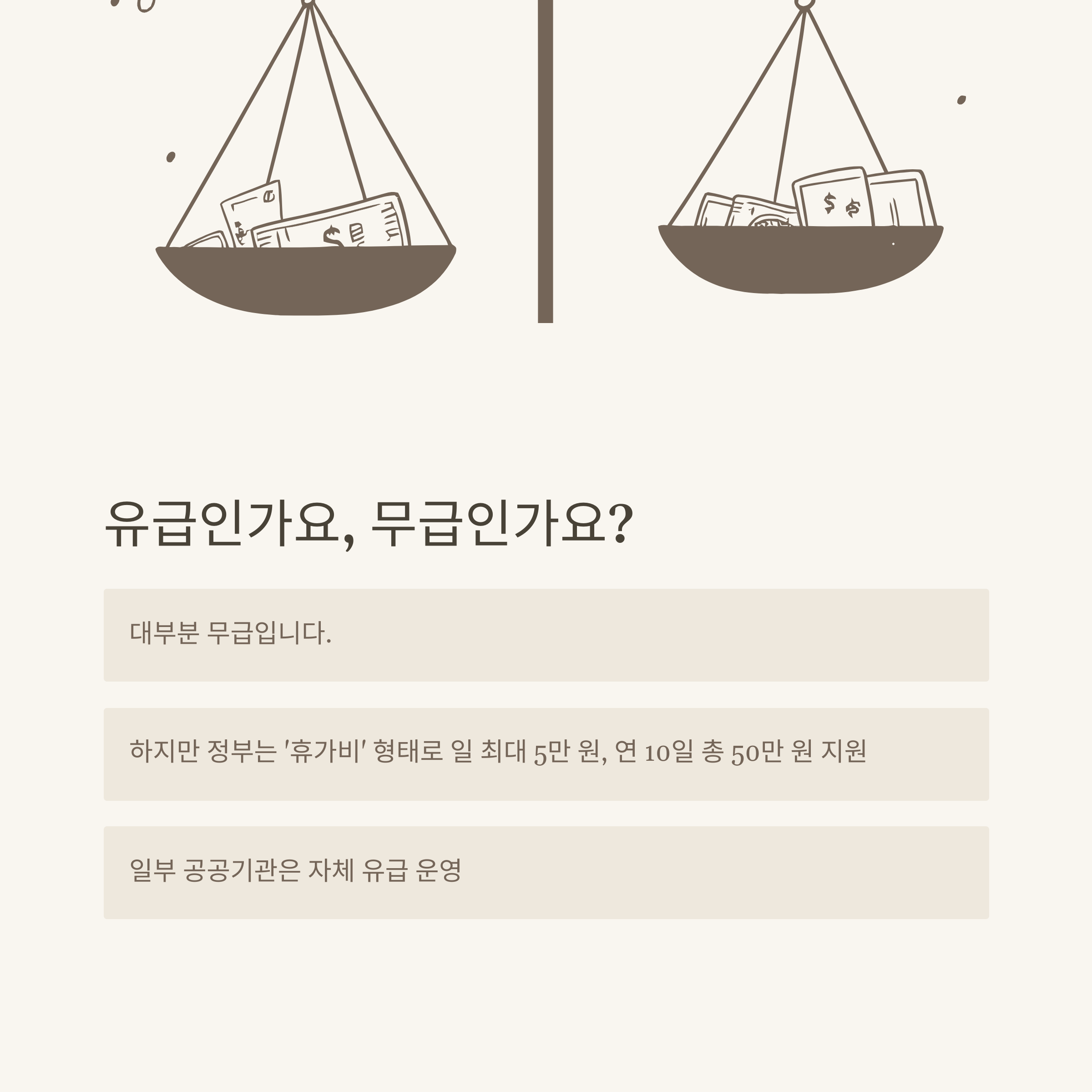 많은 분들이 가장 헷갈려하는 부분이 ‘가족돌봄 휴직이 유급인지 무급인지’입니다. 저도 직접 사용하기 전까지 회사마다 다른 줄 알고 있었는데, 원칙적으로 가족돌봄 휴직은 무급이 기본입니다. 다만, 정부가 별도 ‘가족돌봄휴가비 지원금’을 통해 일부 금액을 지급하고, 일부 대기업·공공기관에서는 자체적으로 유급휴직으로 운영하기도 합니다.