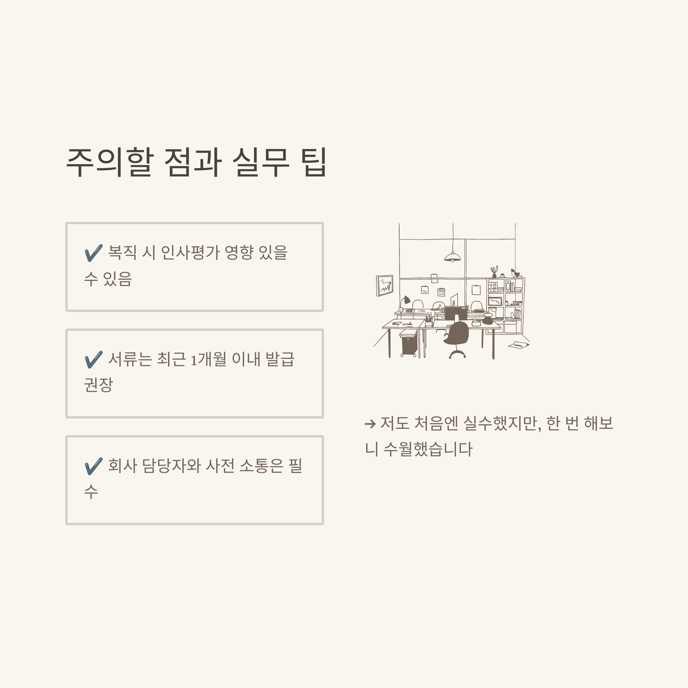 그리고 회사별로 내부 규정이 다르니, 사내 인사담당자와 충분히 상담해 절차를 진행하는 것이 실수 없는 길이었습니다.