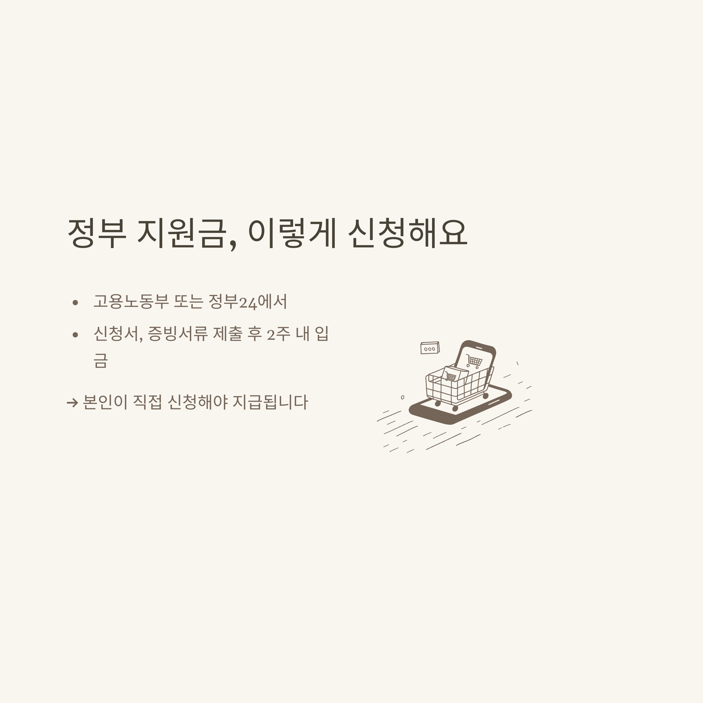 지원금은 신청인이 직접 고용노동부 또는 온라인 정부24에서 서류를 제출해 별도로 신청해야 하며, 최대 1일 5만 원씩 최대 10일간 지급받을 수 있습니다. 저도 서류 준비 후 신청했고, 실제로 약 2주 이내에 입금이 이뤄졌습니다.