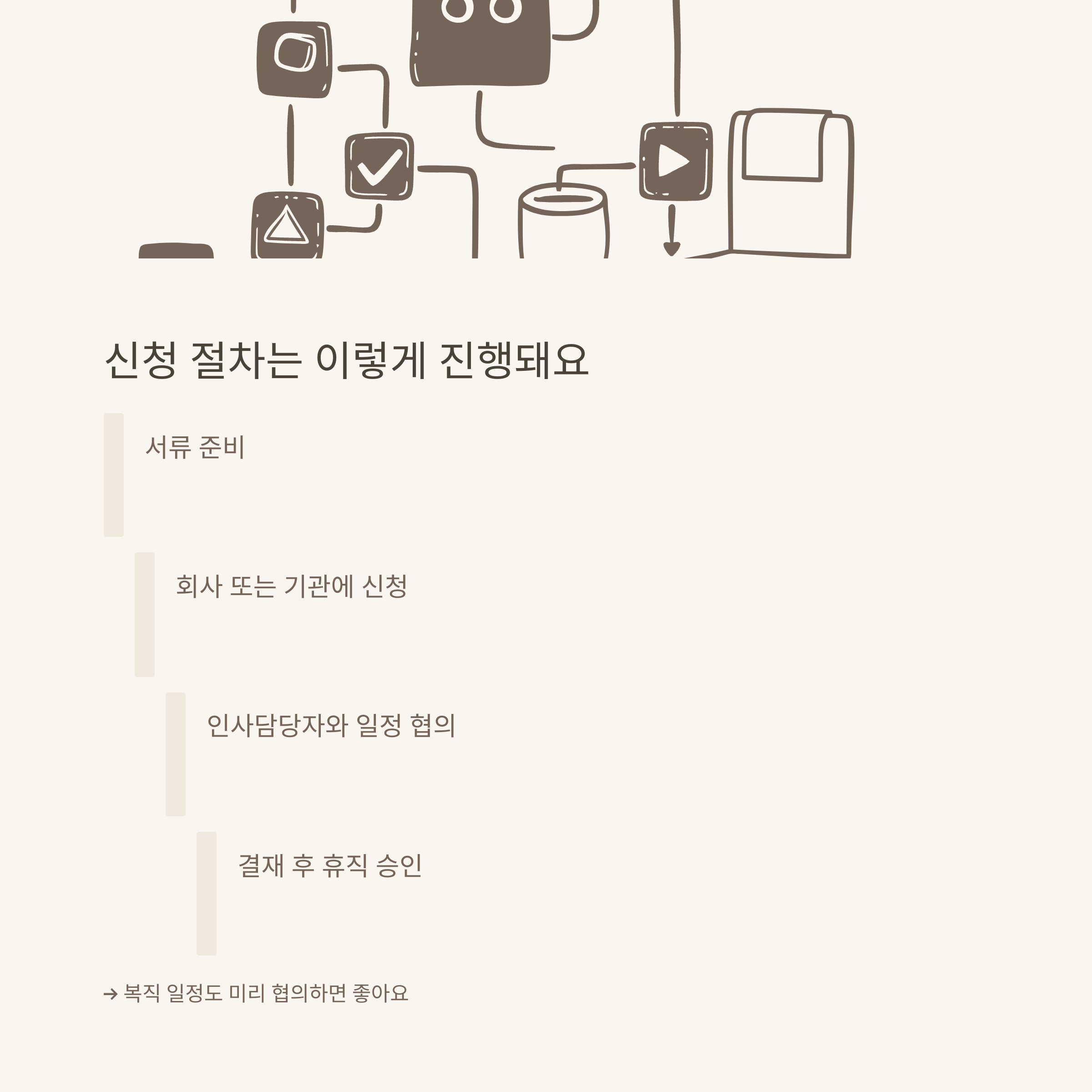 가장 먼저, 서류 준비는 ‘회사 양식’과 ‘공식 증빙’ 두 가지를 모두 확인하는 게 중요했습니다. 그리고 휴직 사용 기간과 복직 일정은 반드시 인사담당자와 미리 협의해 두면 나중에 불필요한 마찰을 줄일 수 있습니다.