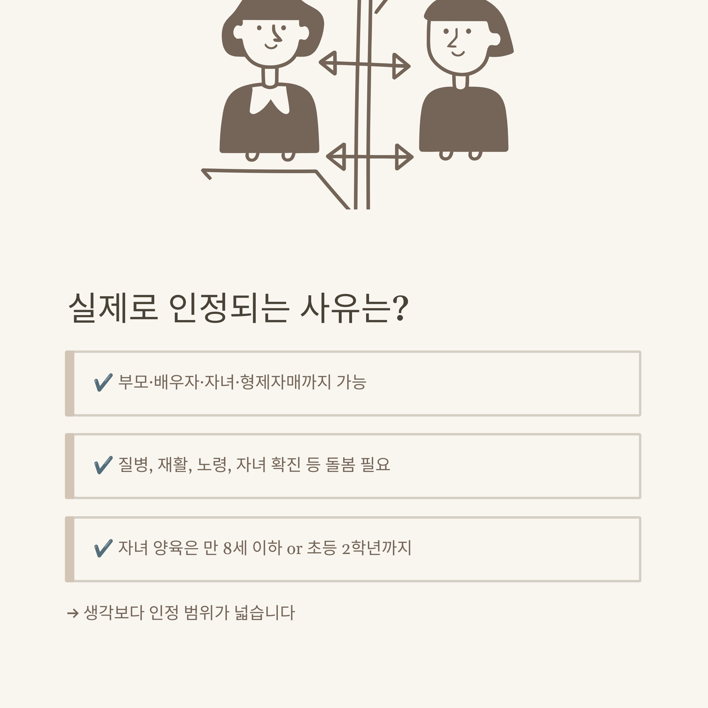 - 가족의 질병, 사고, 노령 등으로 인해 직접적인 돌봄이 필요한 경우