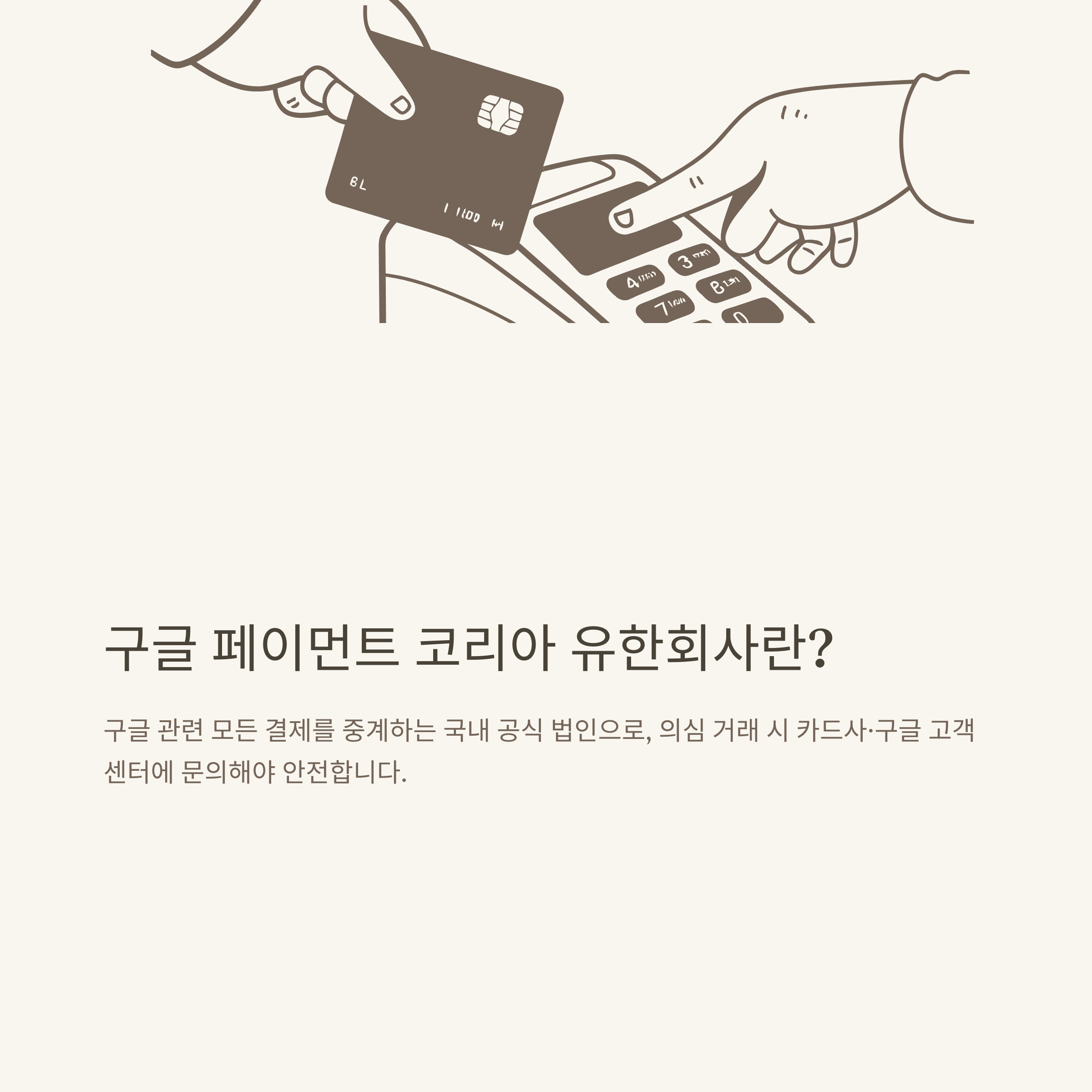 | 구글 페이먼트 코리아 유한회사 | 구글플레이, 유튜브, 앱 결제 중계 | 구글 결제센터, 고객센터 |