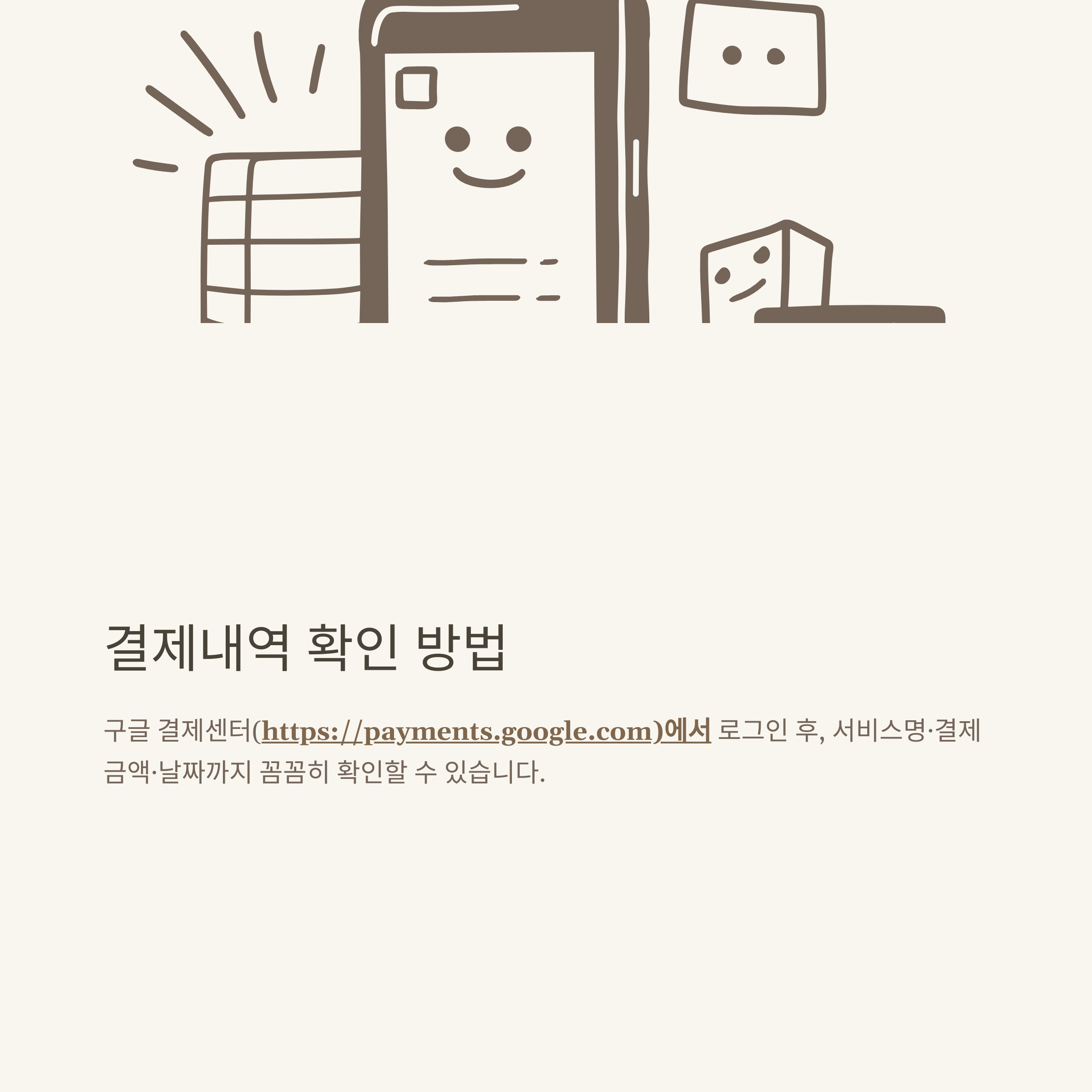 | 결제내역 | 구글 결제센터에서 서비스별 확인 가능 | https://payments.google.com |