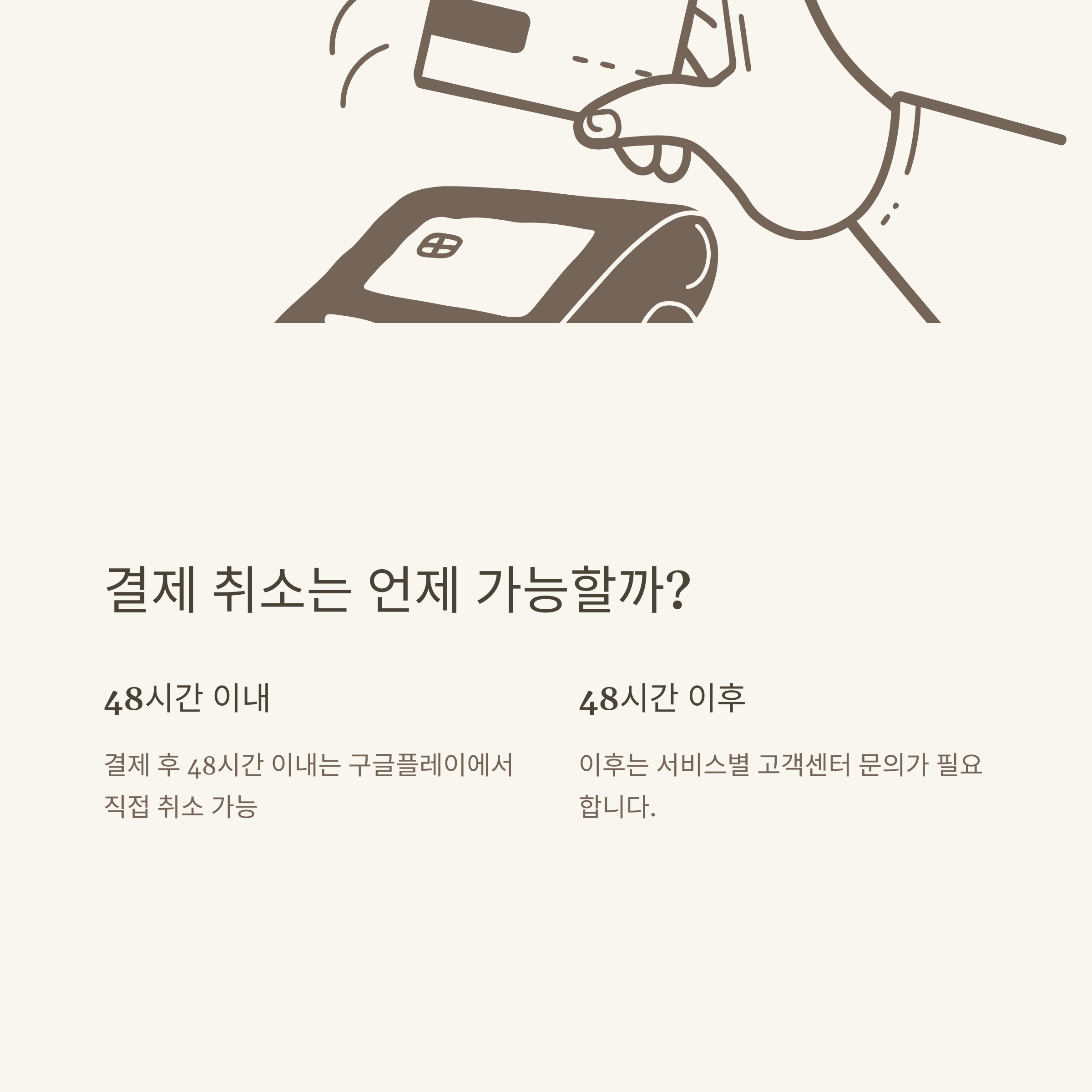 | 구매 후 48시간 이내 | 구글플레이 앱 또는 웹에서 직접 환불 신청 |