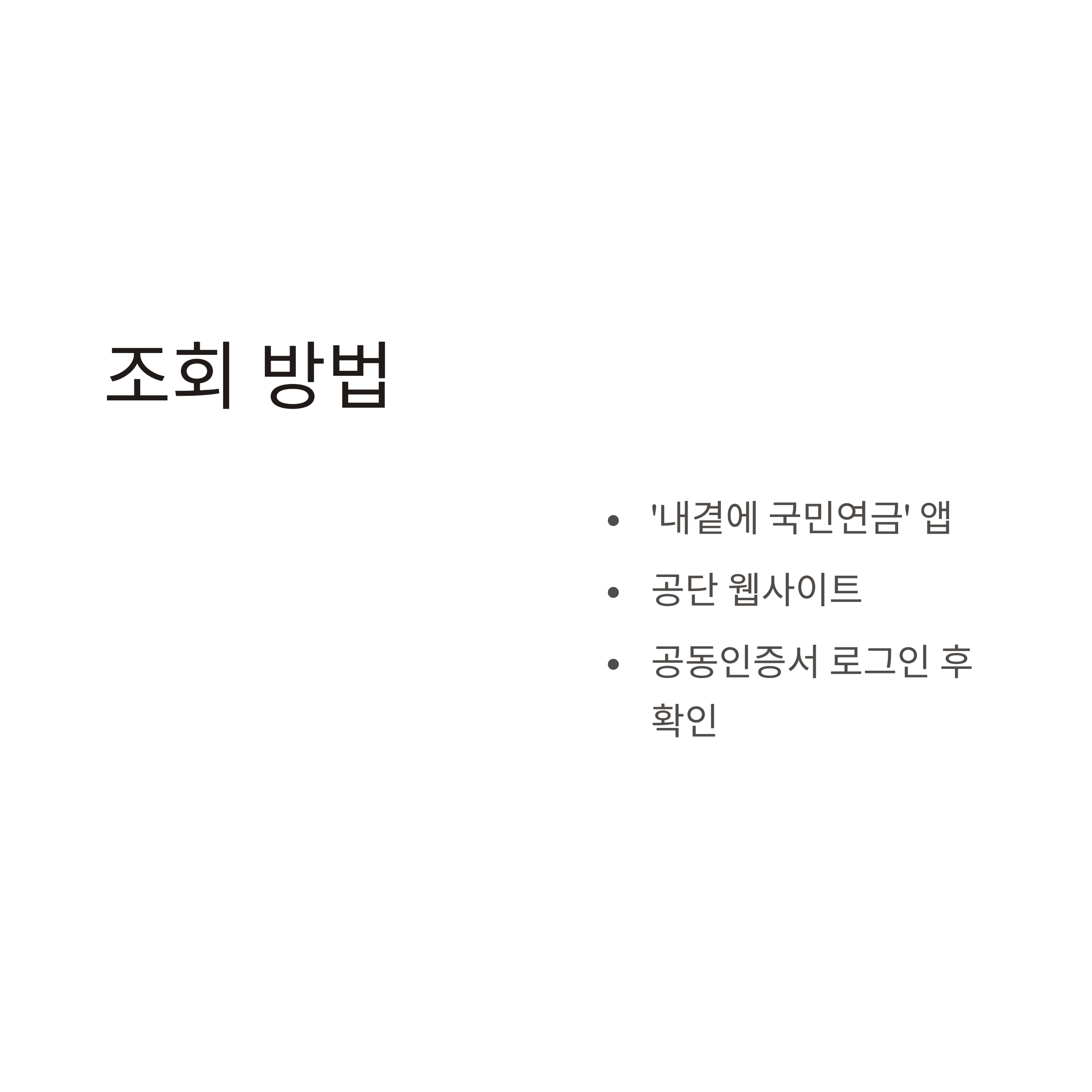 - 또는 '내곁에 국민연금' 앱 설치 → 로그인 후 '급여내역' 탭 확인
