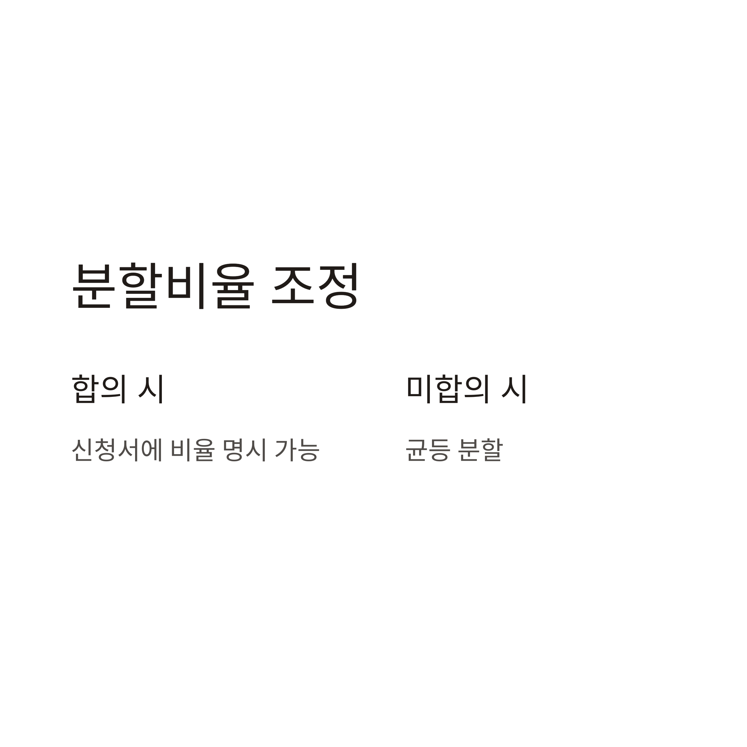 - 미합의 시 공단 기준에 따라 균등 분할