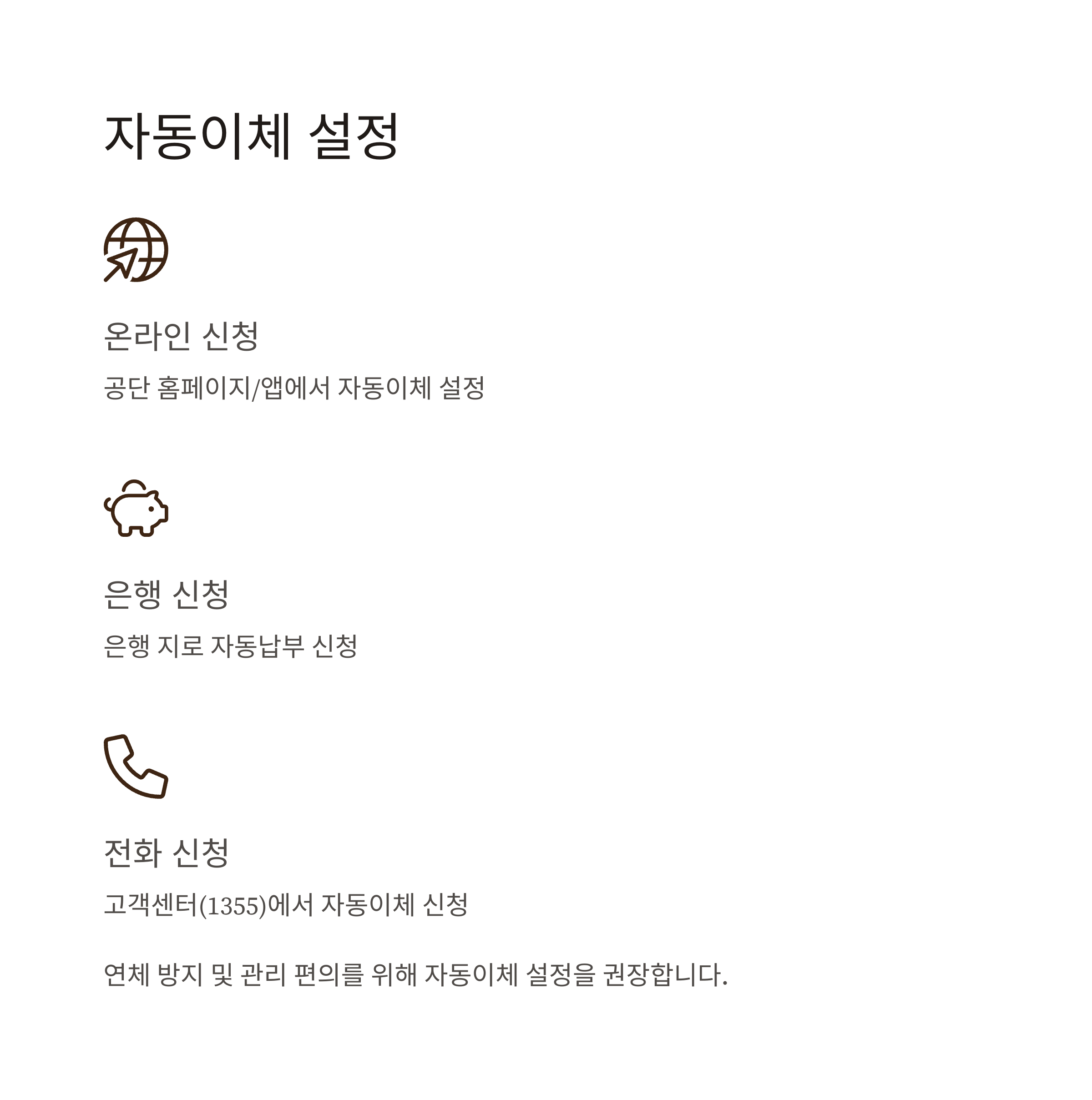 | 자동이체 | 홈페이지·앱·고객센터에서 설정 가능 |