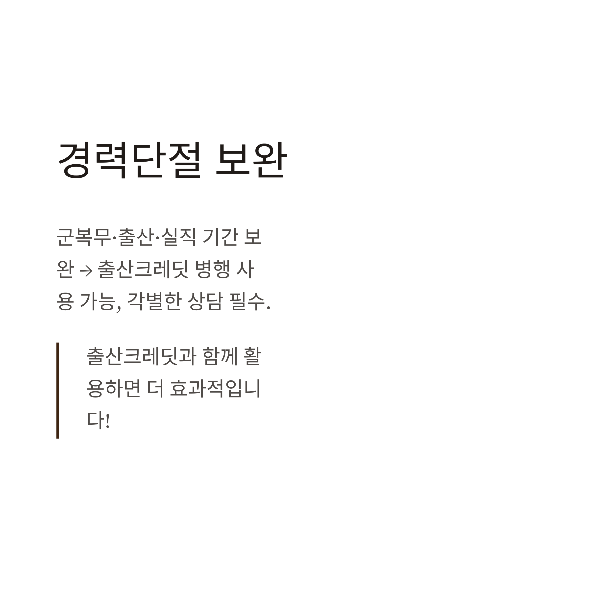 - 출산경력: 출산크레딧 + 추가납입으로 이중 보완