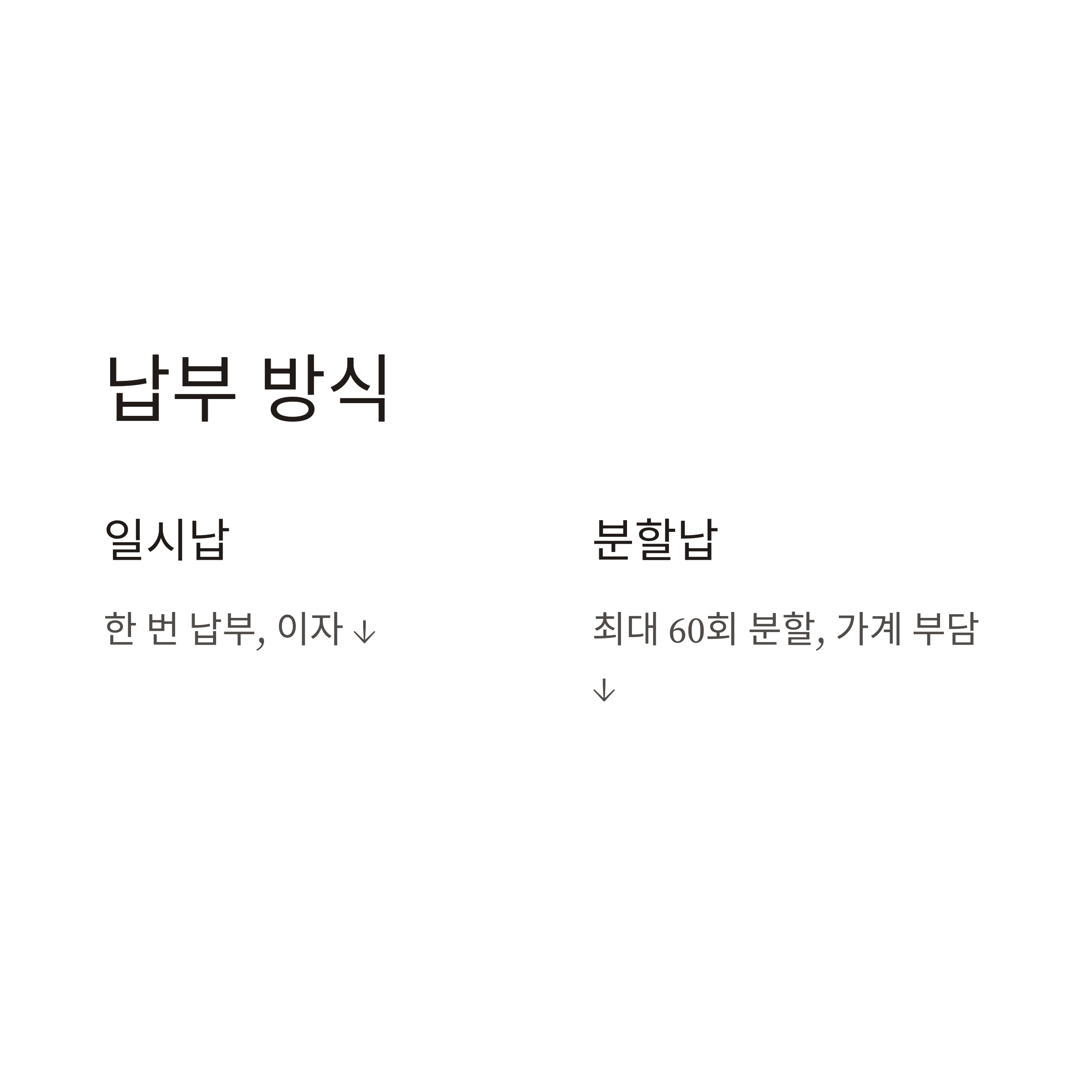 | 납부 방식 | 일시납 또는 최대 60회 분할납부 가능 |