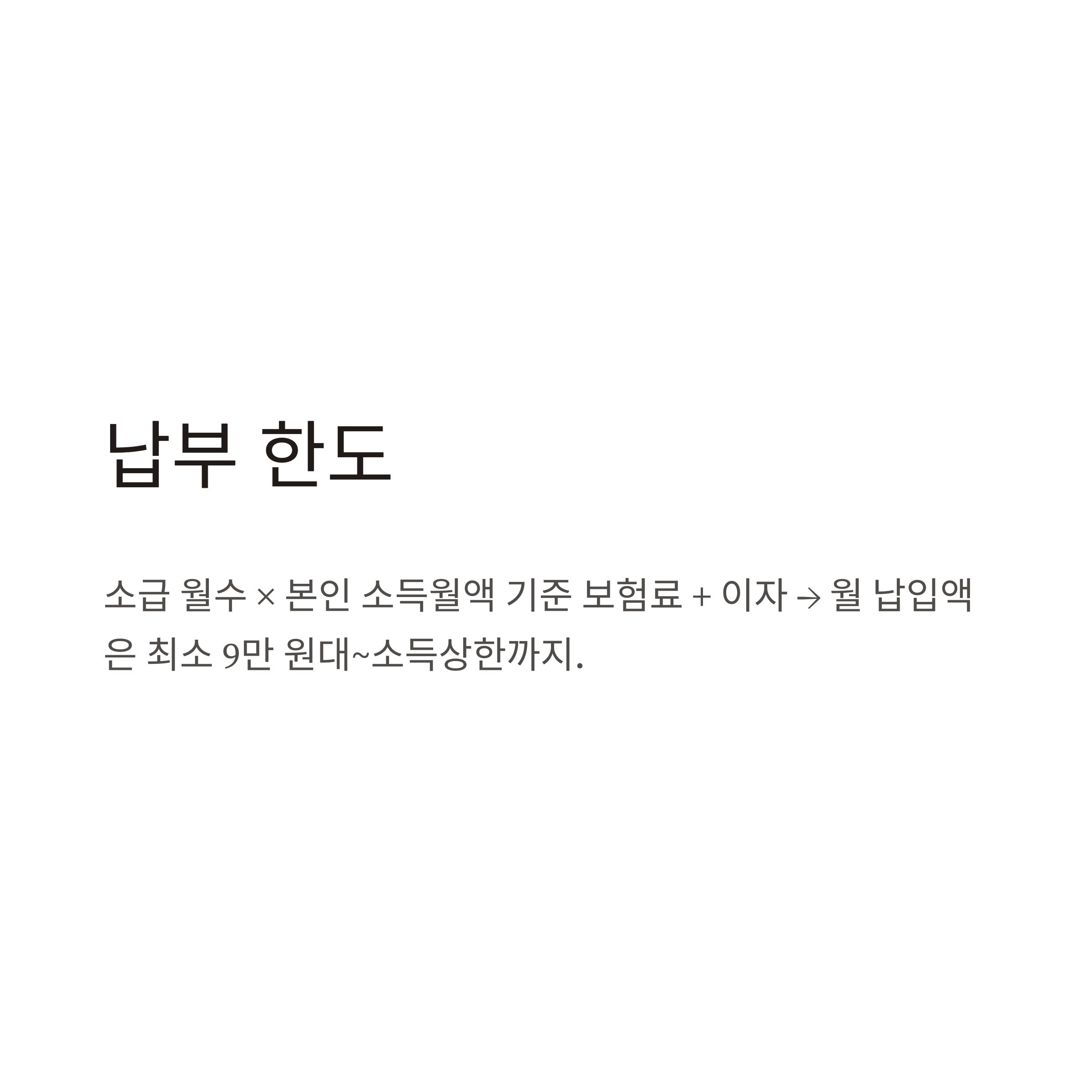 공단 기준에 따라 월 소득 기준에 맞는 보험료를 설정하고, 그 금액에 따라 납부액이 계산됩니다. 최소 금액은 월 9만 원대이며, 최대는 직전 신고 소득 기준입니다.