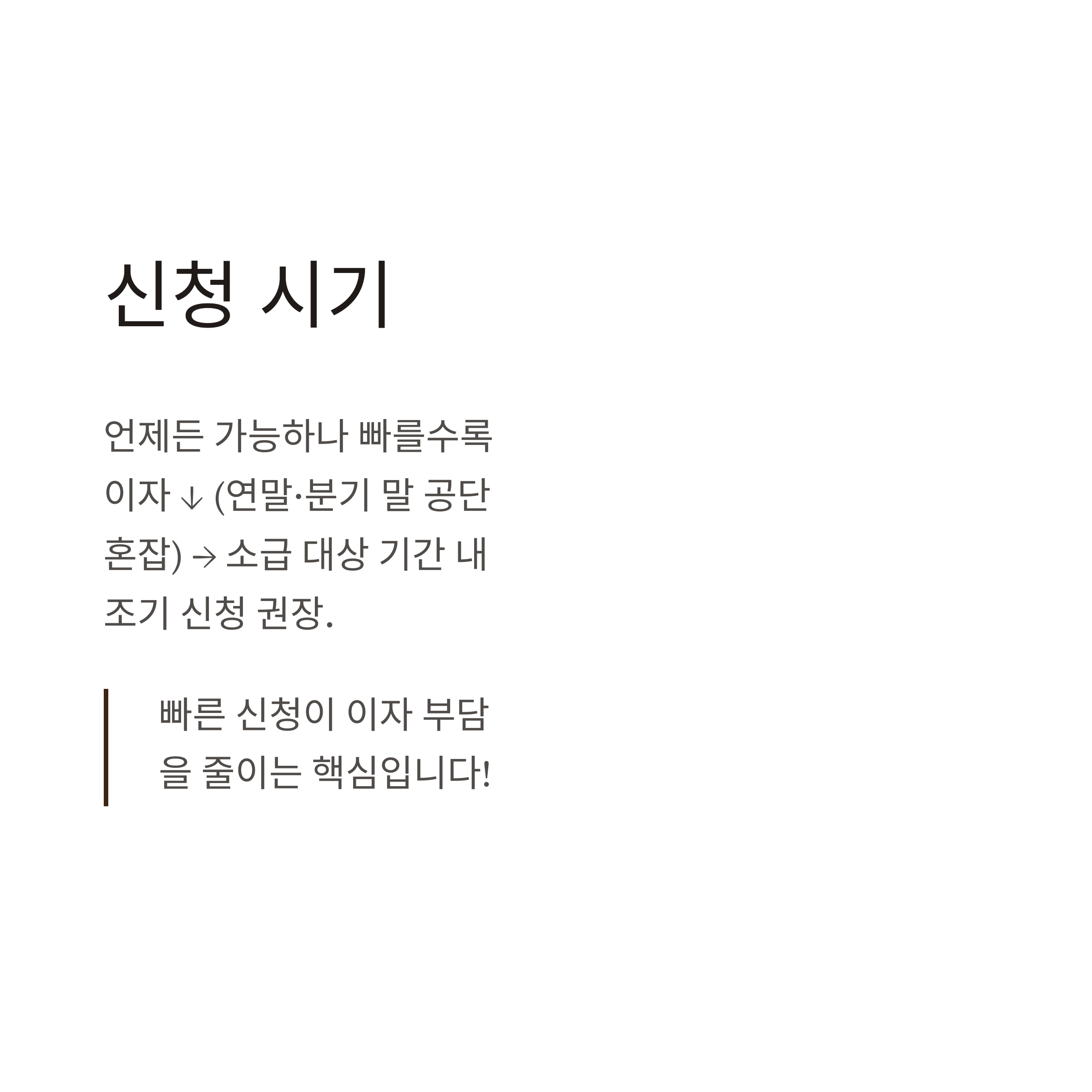 | 이자 부담 | 상대적으로 낮음 | 기간에 따라 이자 증가 |