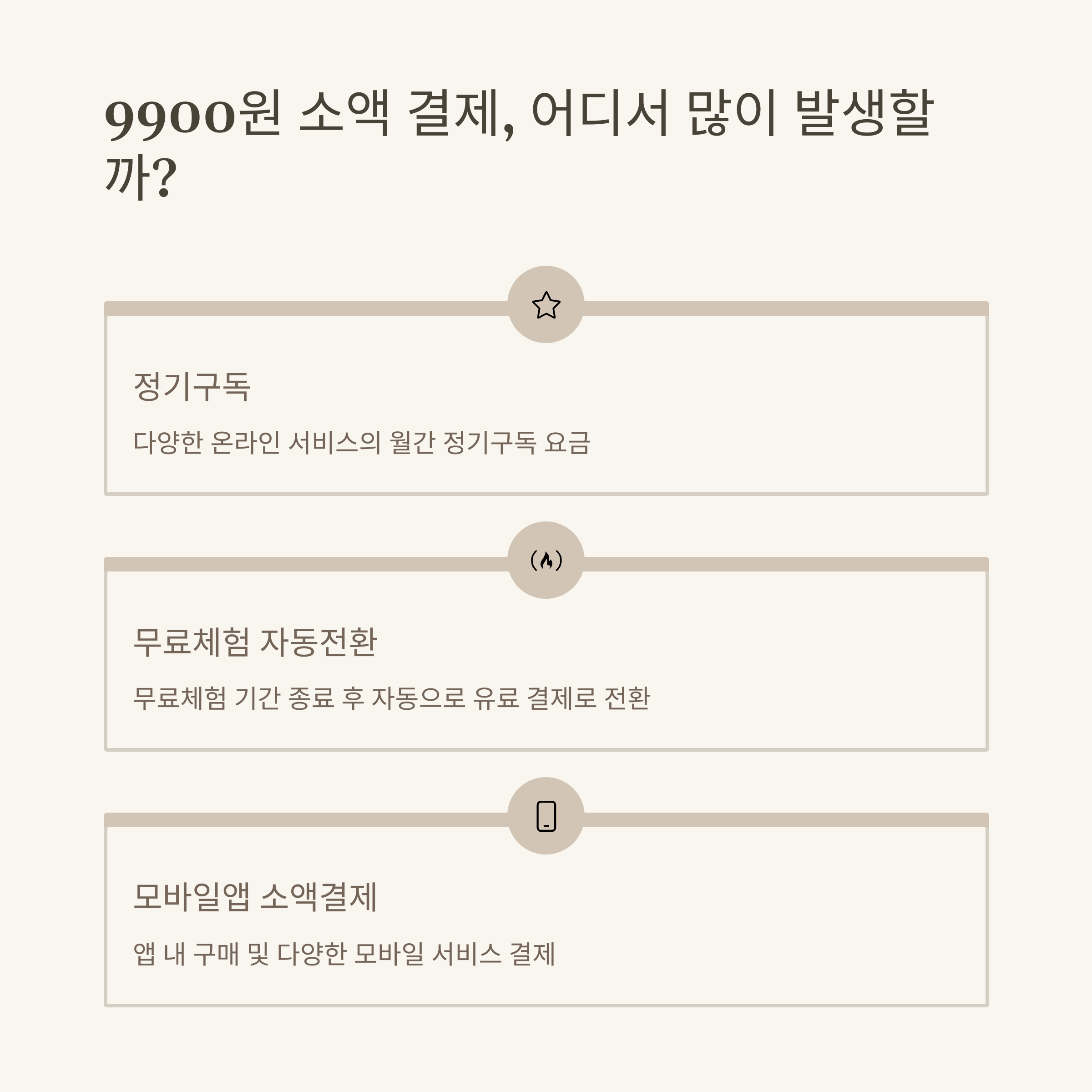 | 자동결제 | 정기구독, 무료체험 종료, 소액 자동과금 | 서비스 마이페이지 해지 필수 |
