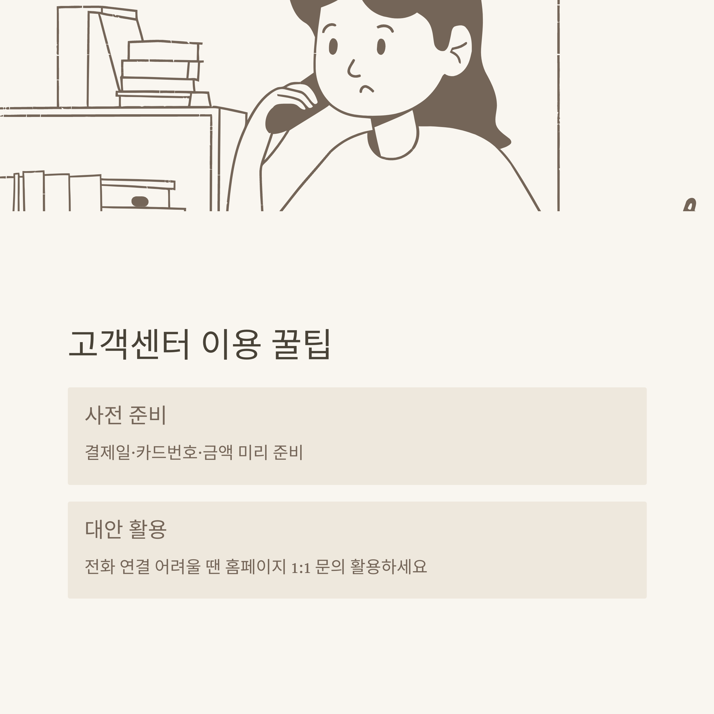 - 전화연결 어려울 땐 홈페이지 문의 기능 적극 활용