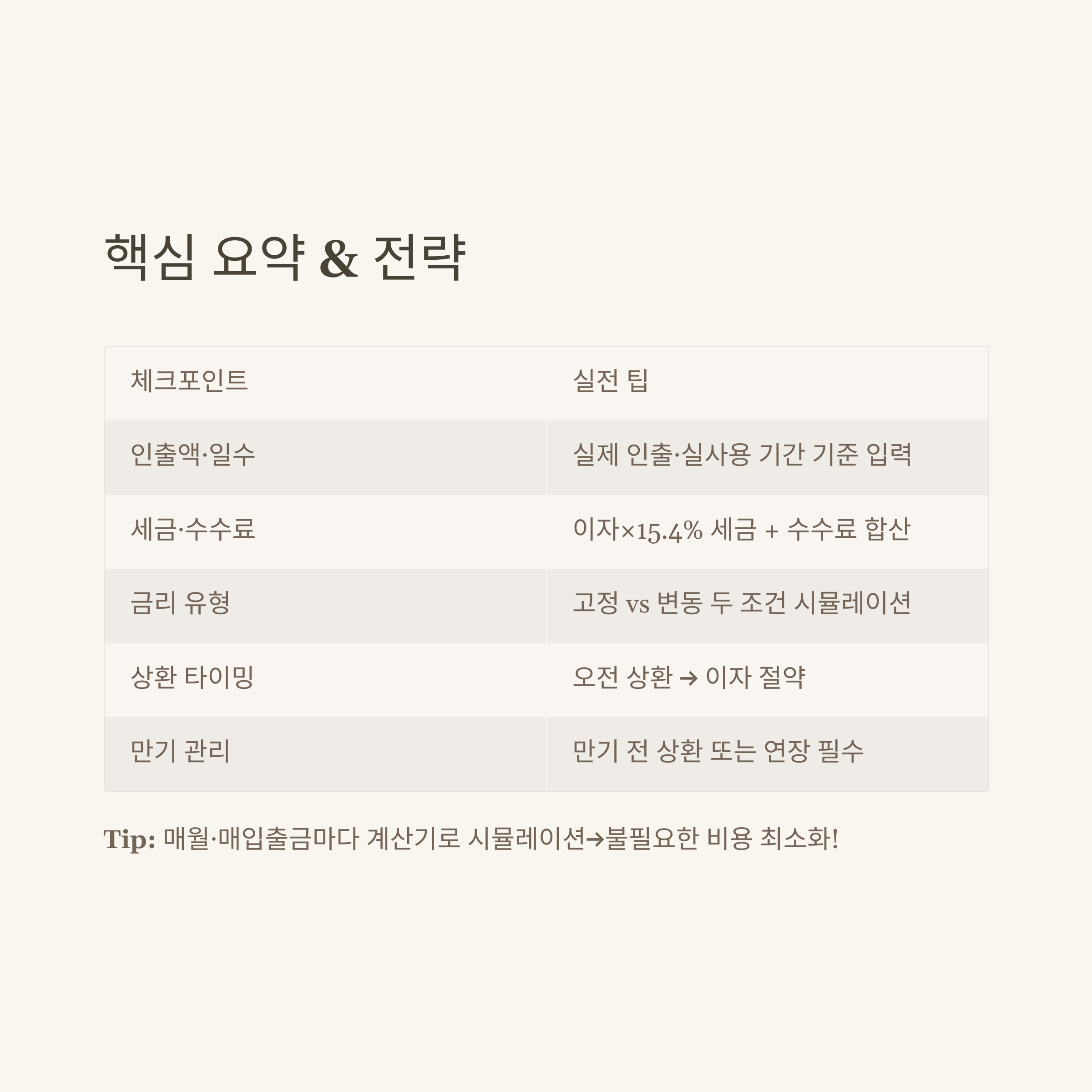 - 금리 변동 시 매번 계산기 돌려서 이자 변화 확인 권장