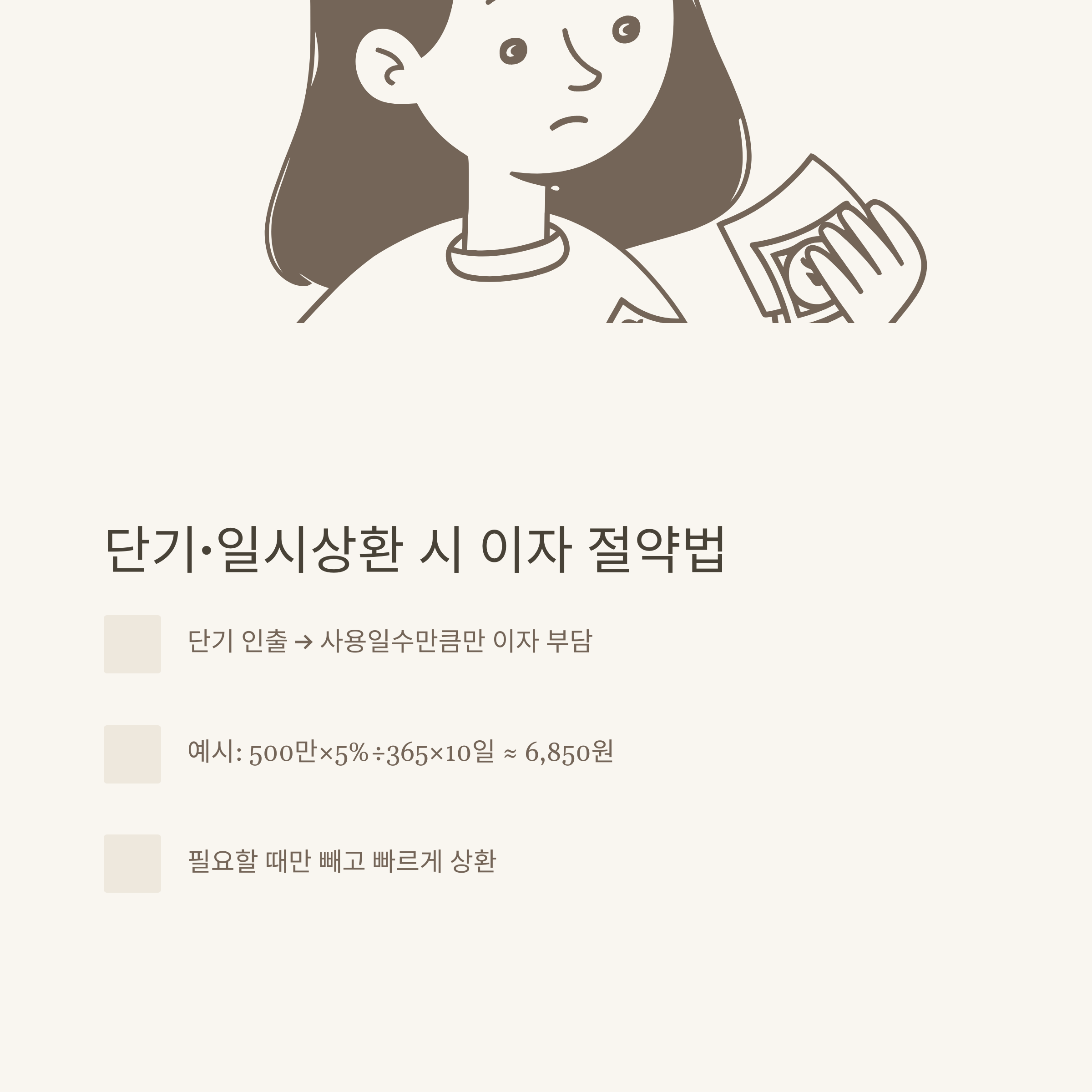 - 이용금액: 한도 내 실제 인출한 금액만 이자 발생