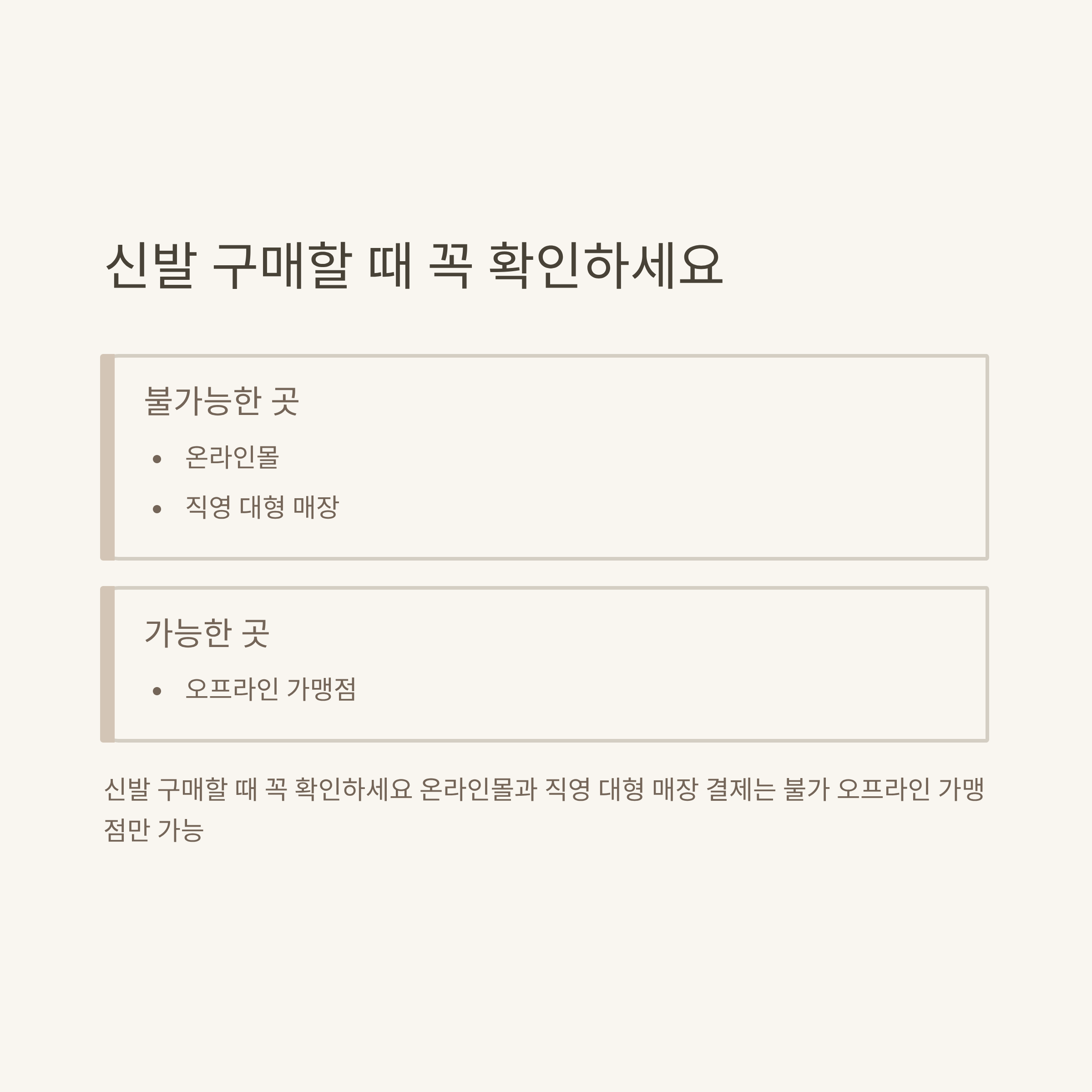 예를 들어, 나이키 봉담점처럼 독립적으로 운영되는 로드숍은 연매출 조건을 충족해 사용 가능성이 높습니다. 반면 백화점 내 입점된 나이키 매장이나 대형 아울렛 매장은 대부분 연매출 초과나 본사 직영 형태여서 사용이 불가능합니다.