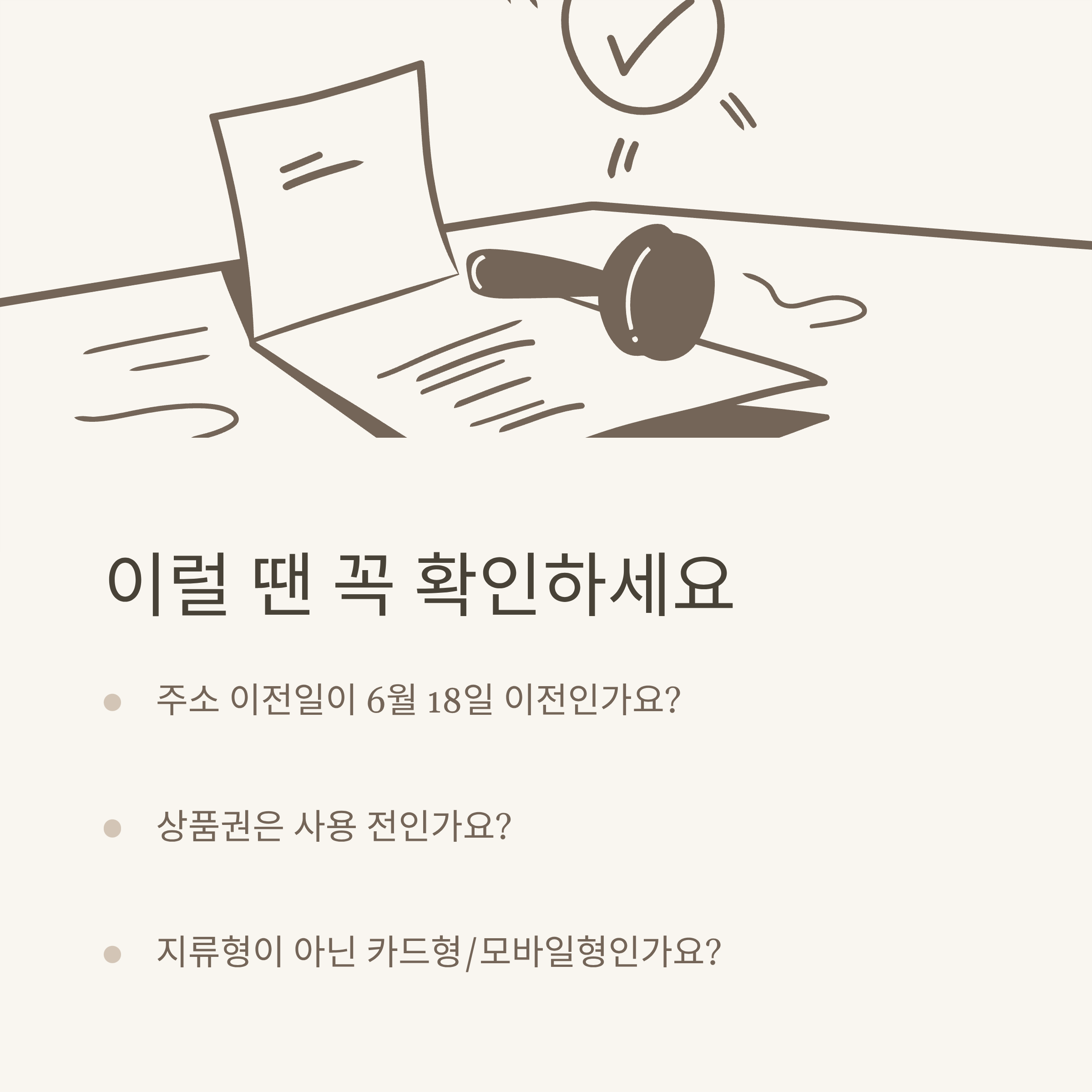 - 변경 기준일 확인: 주소지 이전은 2025년 6월 18일 이전에 완료돼야 함