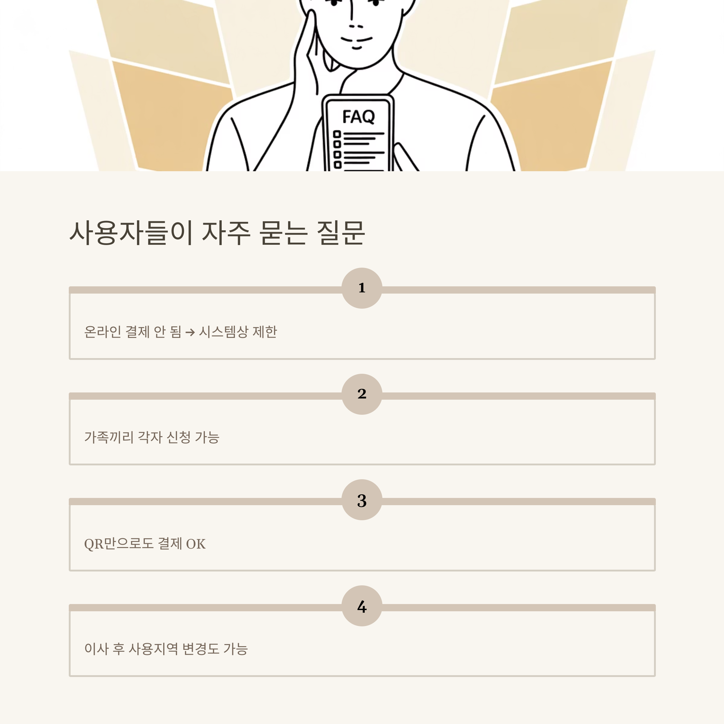- 주소지 이사 시 전입신고 완료 후 사용지역 변경 가능(신용·체크카드 방식 한정)
