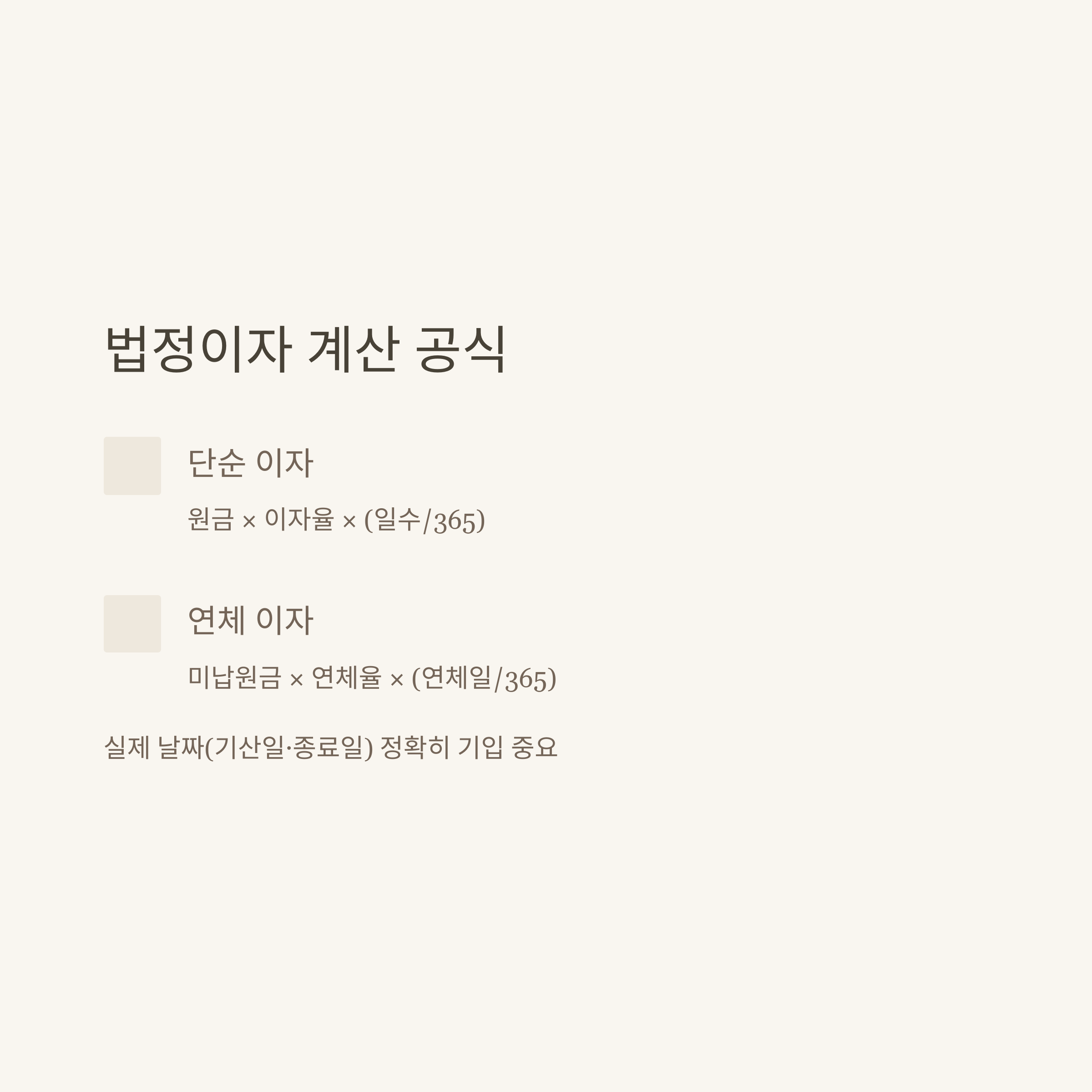 | 단순 법정이자 | 원금 × 연이자율 × (일수/365) |