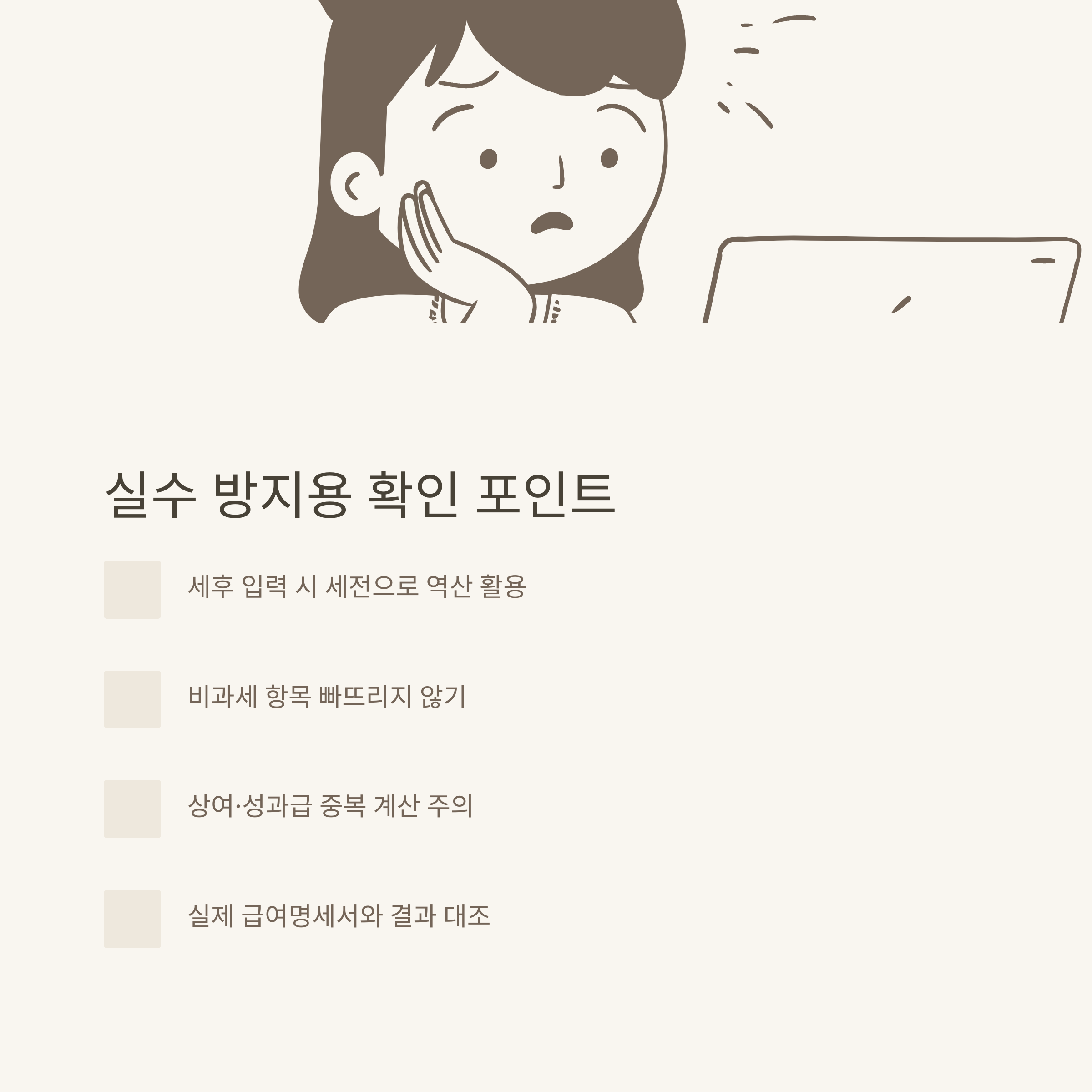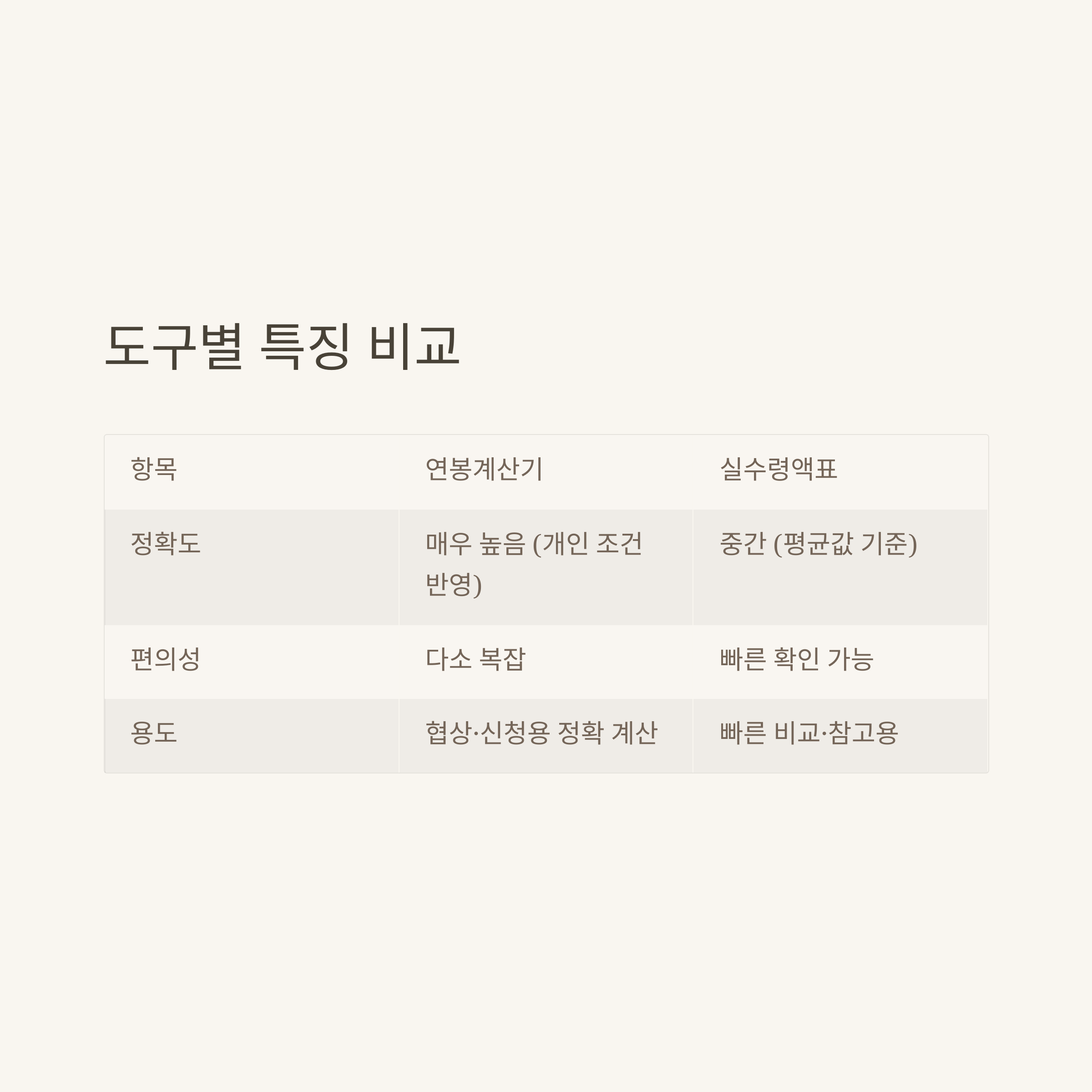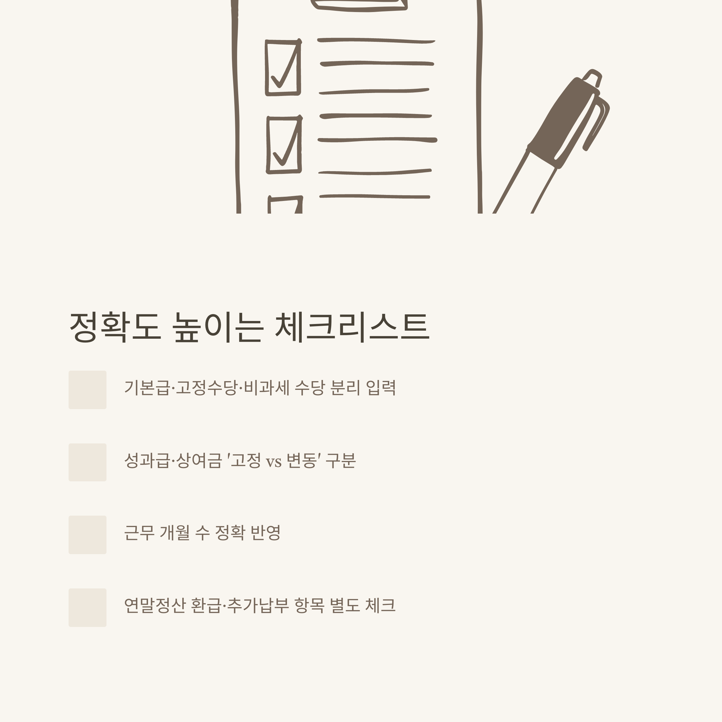 | 실제 수령액 비교 | 계산 결과와 명세서 비교해 오차 확인 |