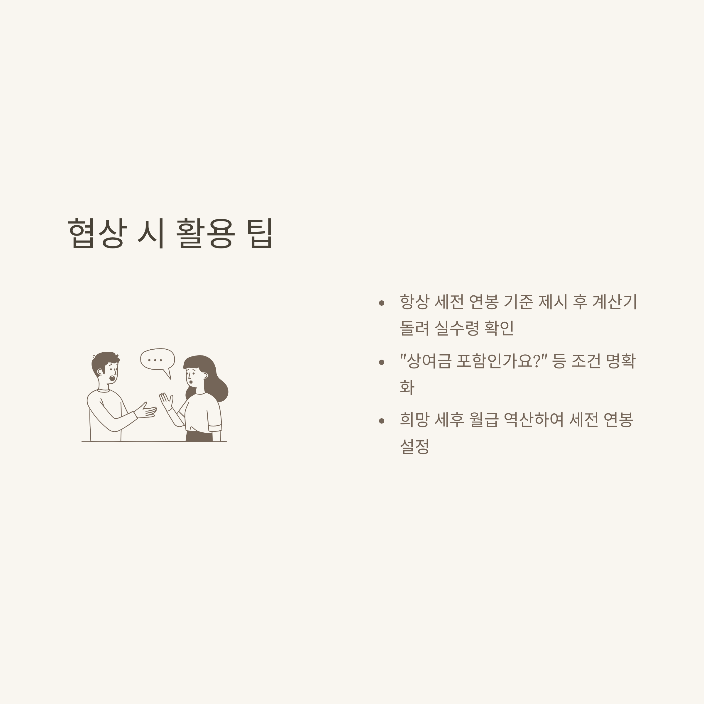 - 협상 시에는 세전 기준 연봉 제시