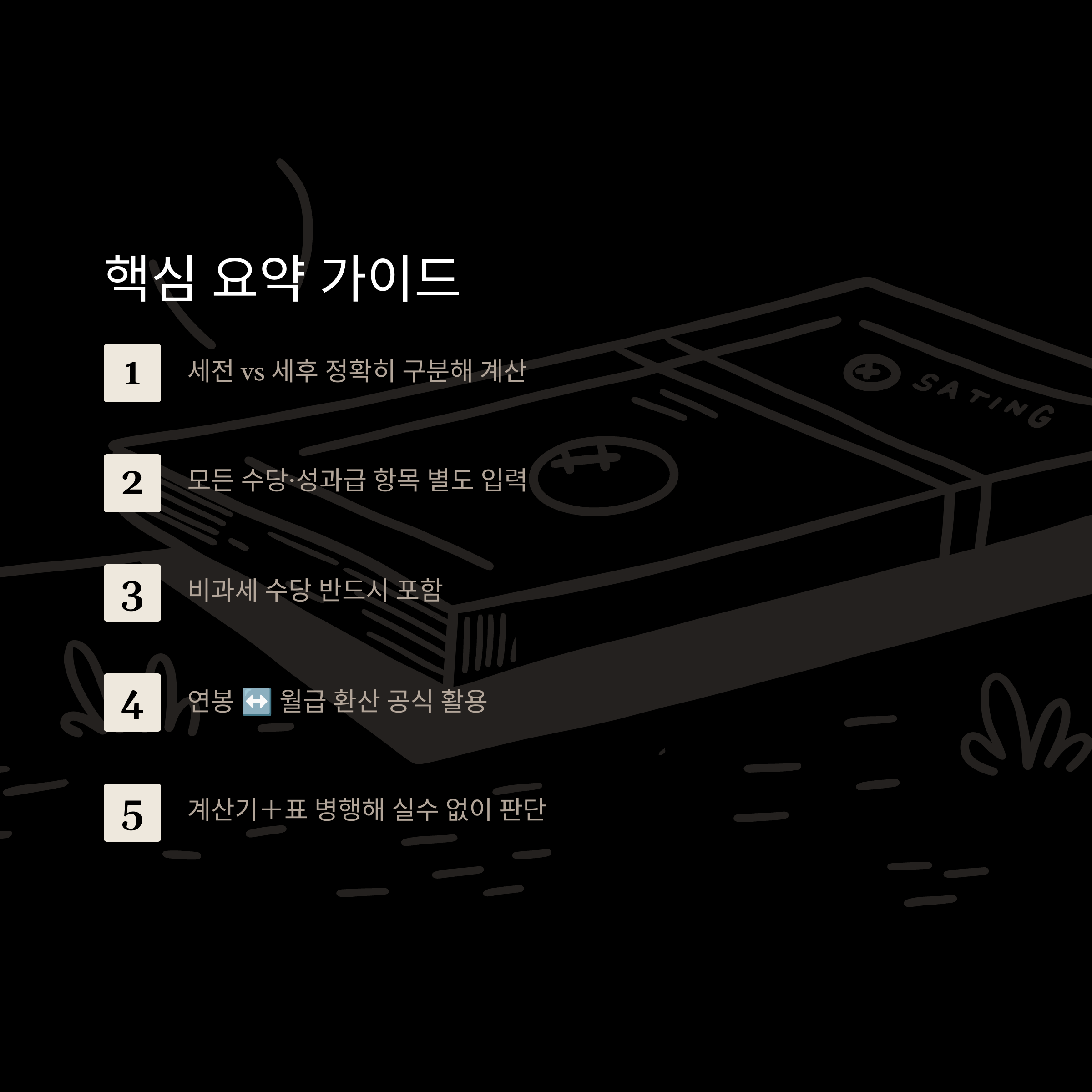 마지막으로 실수 없는 세전 연봉 계산을 위한 핵심 요약표를 정리해드릴게요.
