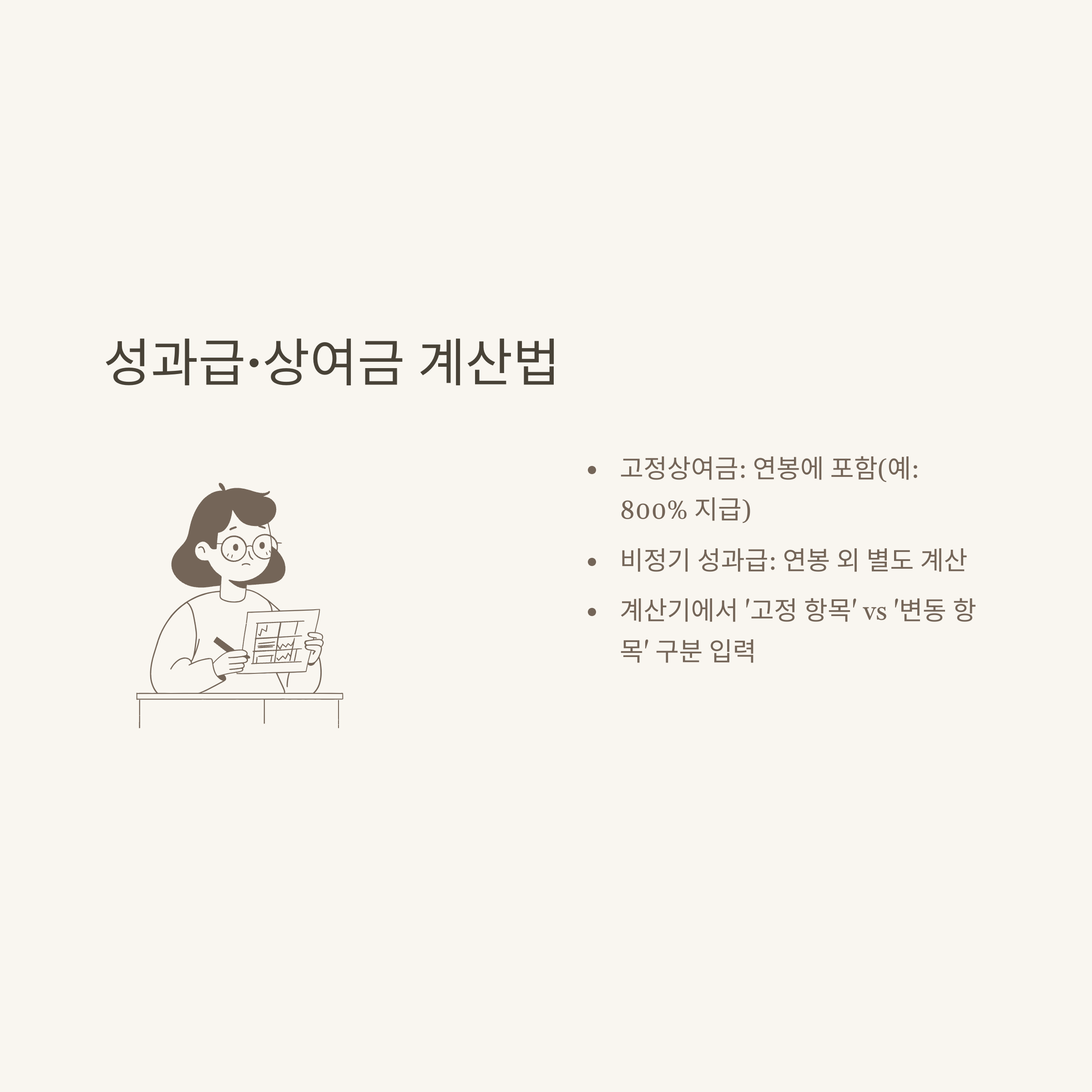 - 성과급, 상여금은 정기성과 여부에 따라 분리