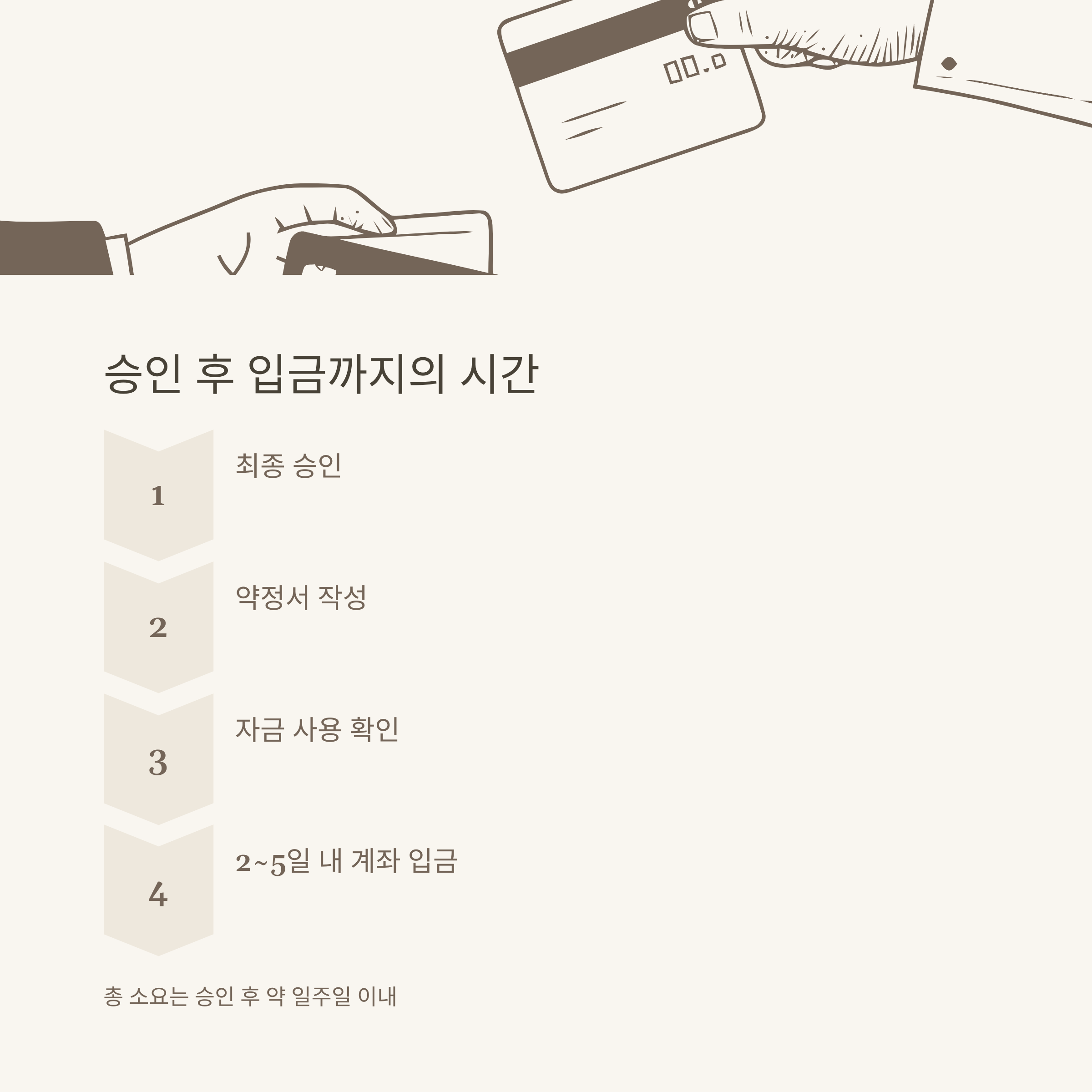 즉, 승인 후 5일 내외면 대부분 입금까지 완료된다고 보시면 됩니다. 저는 주말을 끼고 있어서 6일 정도 걸렸는데, 평일 기준으로는 더 빠르게 처리되기도 해요.