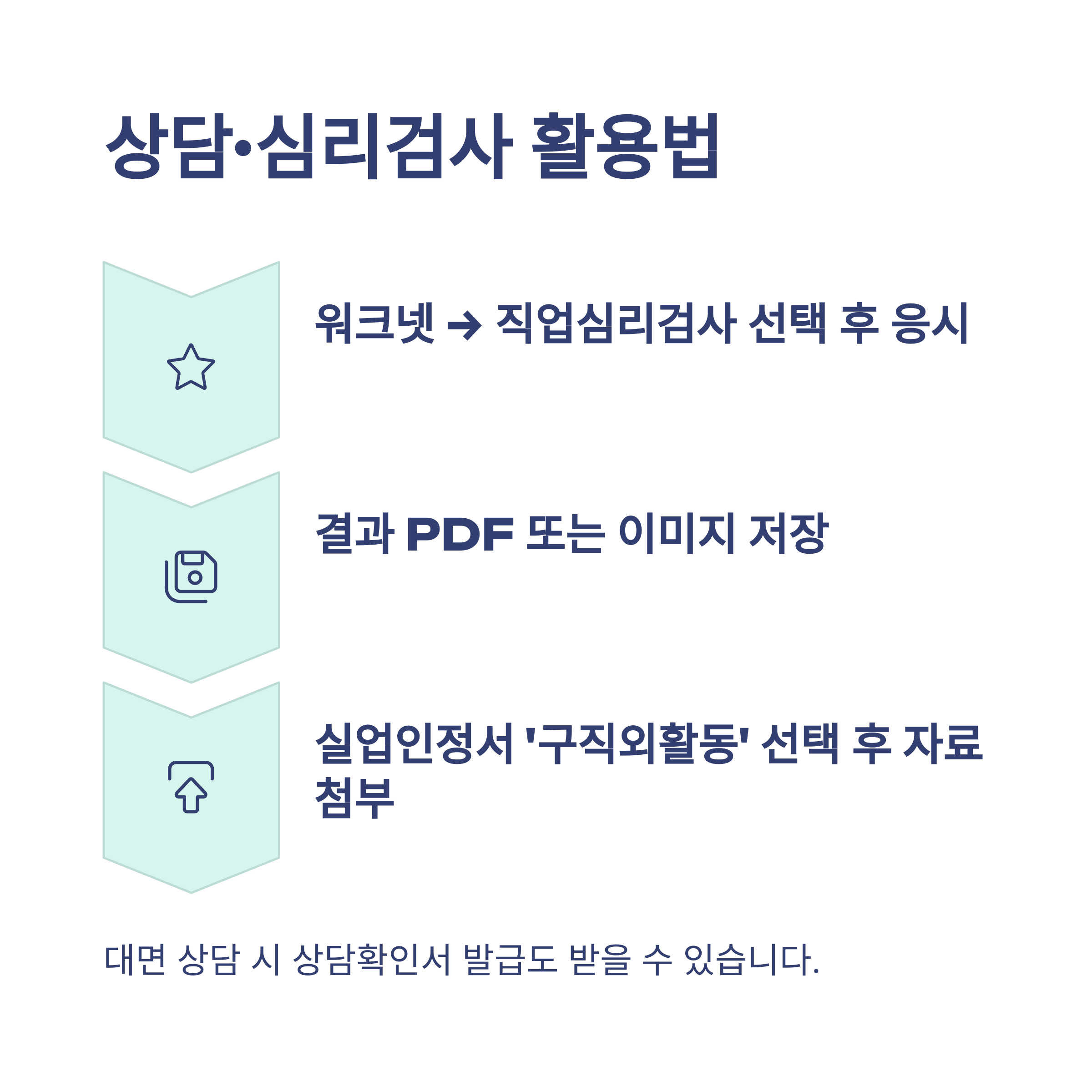 직접 센터에서 진로상담을 받으면 상담확인서를 발급받을 수도 있습니다. 이 또한 실업인정 시 구직외활동으로 인정됩니다. 시간이 가능하다면 온라인보다는 대면상담이 더 신뢰도 있게 여겨지는 느낌도 있었어요.