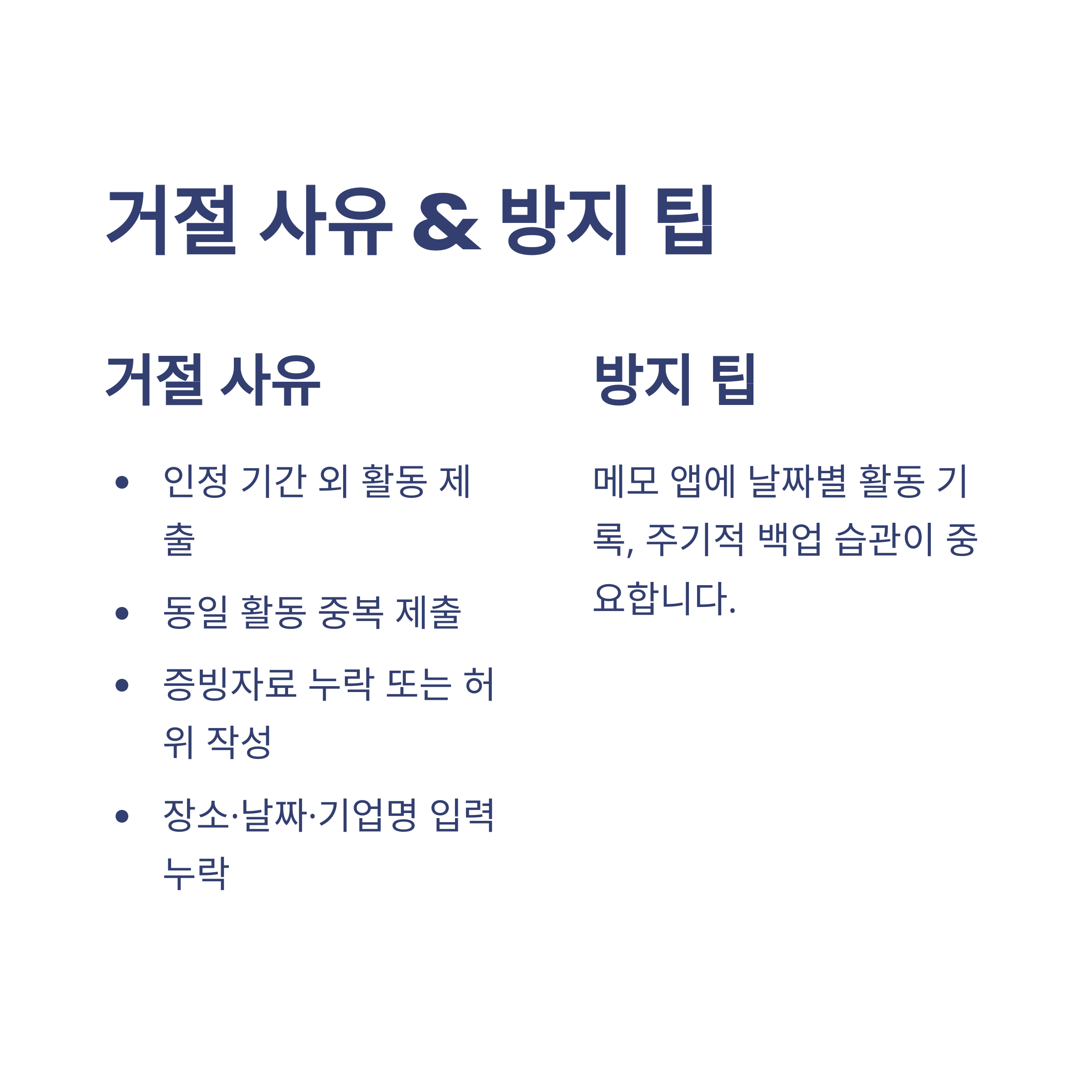 실업인정 거절을 방지하기 위해서는 활동 내용을 날짜별로 메모해두고, 미리미리 증빙자료를 확보하는 습관이 중요합니다. 저는 스마트폰 메모 앱에 날짜별 활동을 정리해두고, 주기적으로 백업하면서 대비했어요.