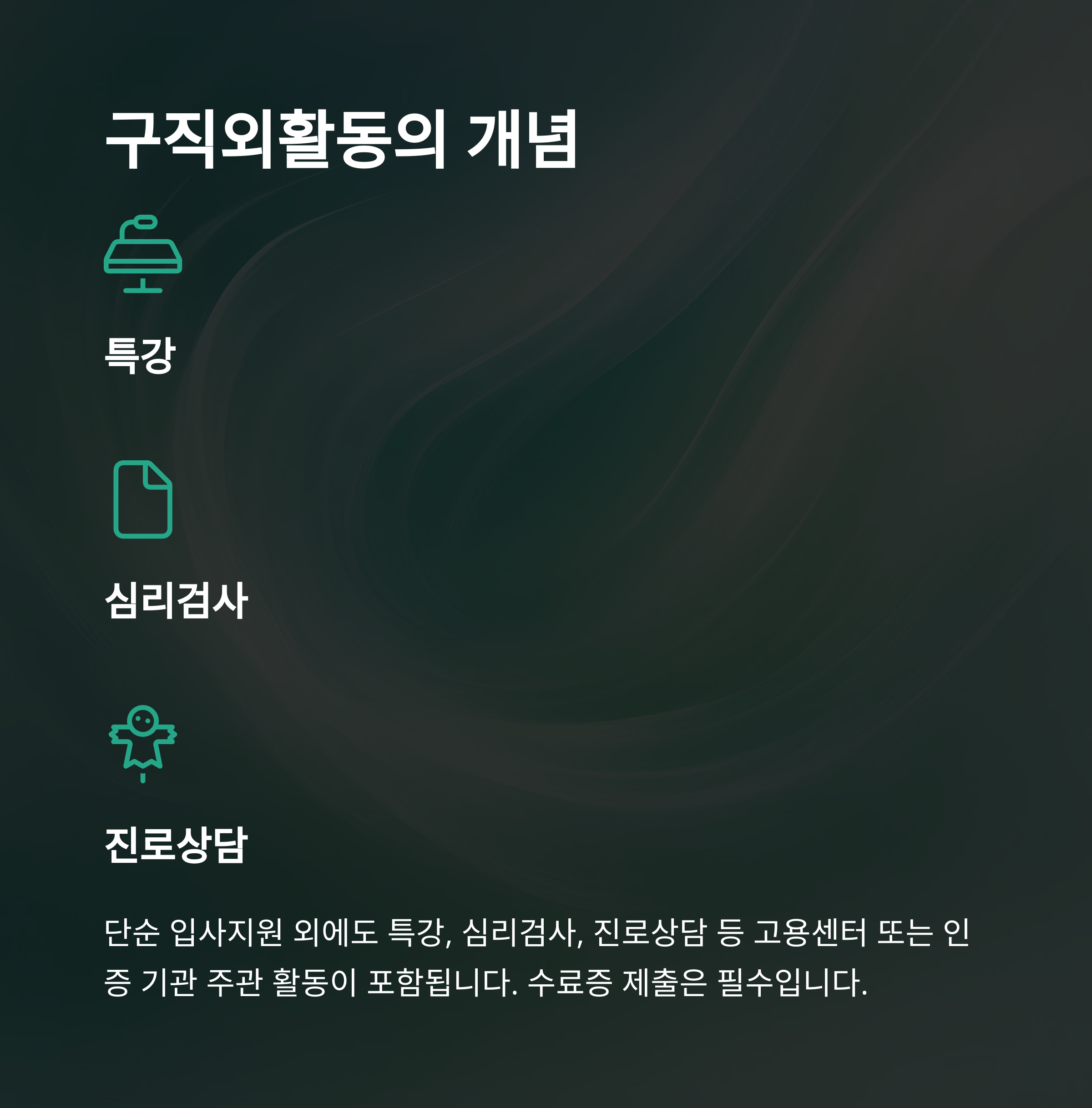 구직외활동 중 저는 ‘온라인특강’과 ‘심리검사’ 두 가지를 병행해서 진행했는데요, 선택지는 생각보다 다양했습니다. 특히 실업급여 4차 실업인정 시에는 한 번쯤은 ‘구직외활동’을 선택하시는 게 훨씬 수월하다는 느낌을 받았어요.
