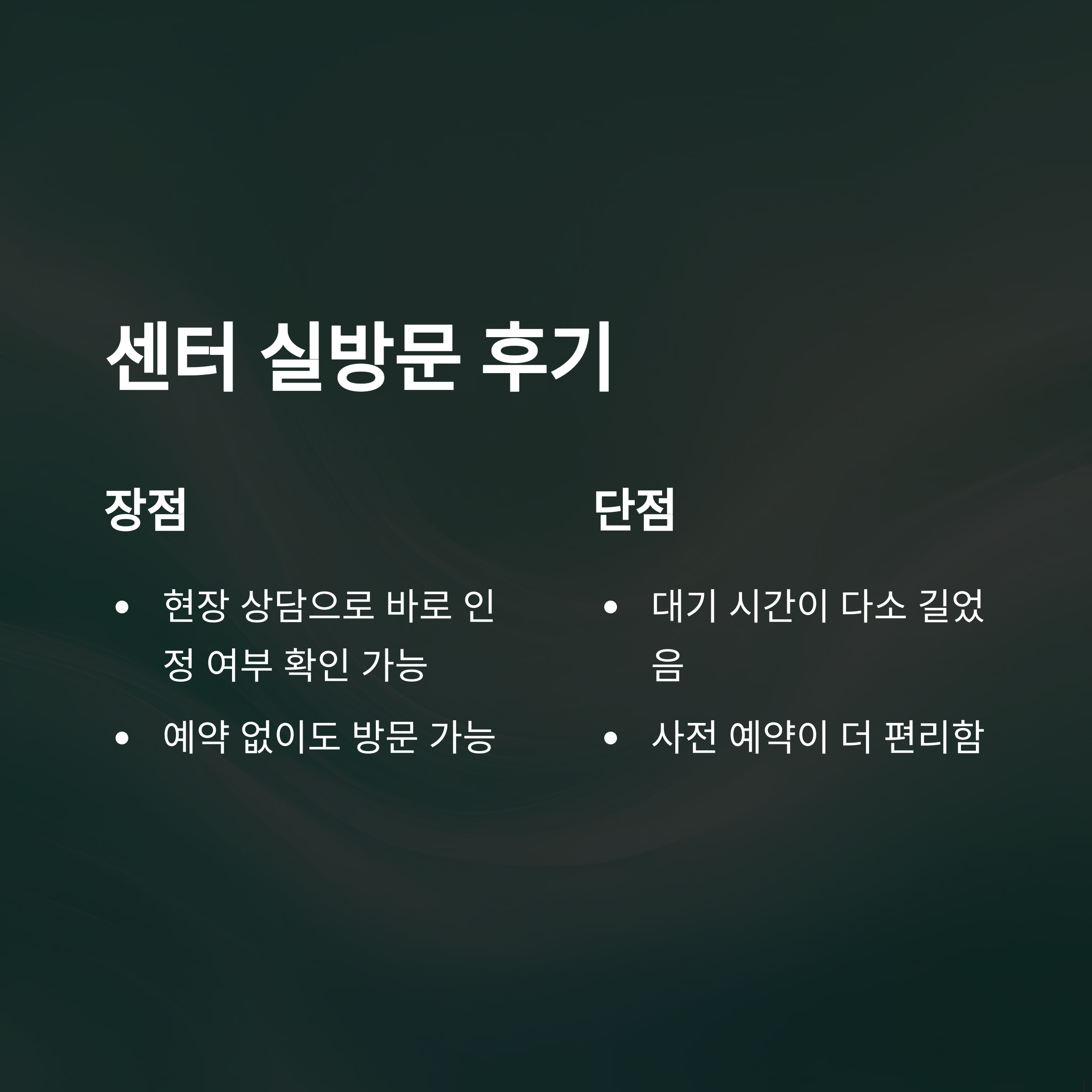 | 직접 상담 가능 | 대기 시간 길 수 있음 |
