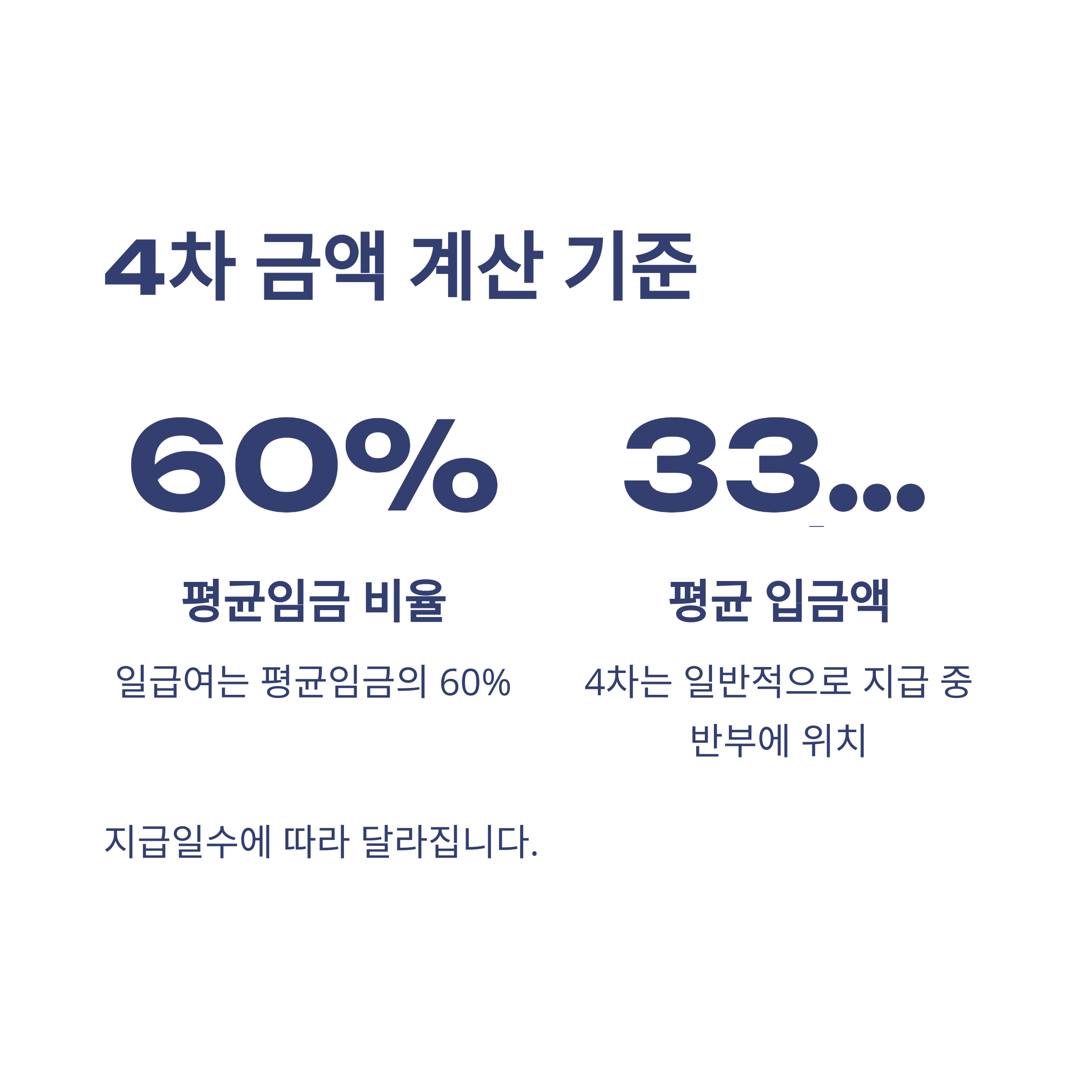 - 일급여 = 평균임금의 60% (상·하한선 존재)