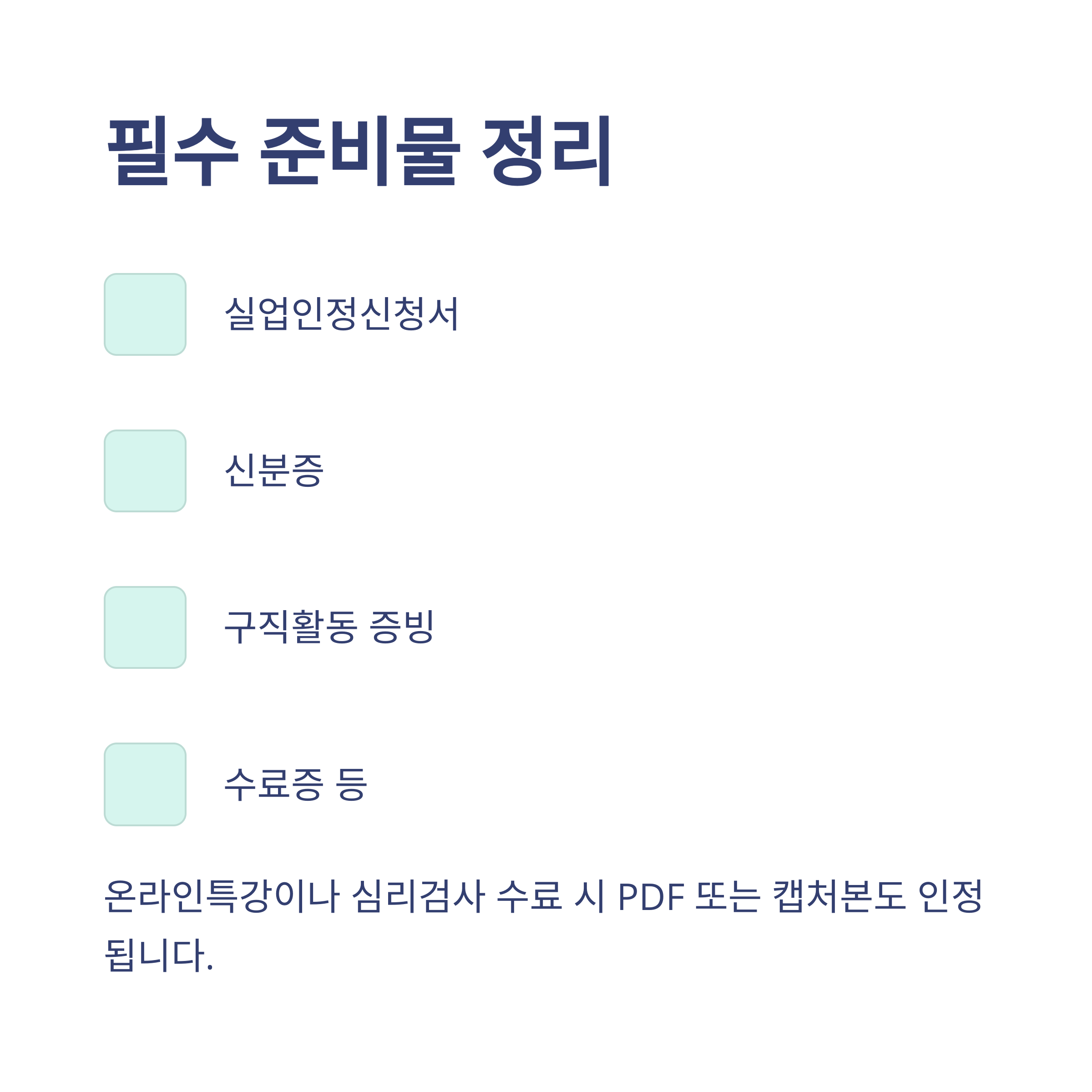 - 고용보험 수첩 또는 실업인정신청서 (온라인 출력 가능)