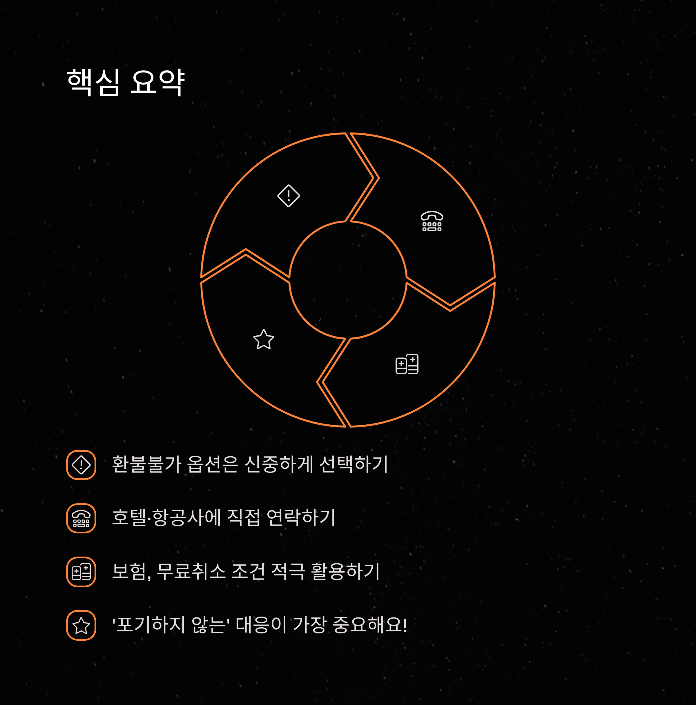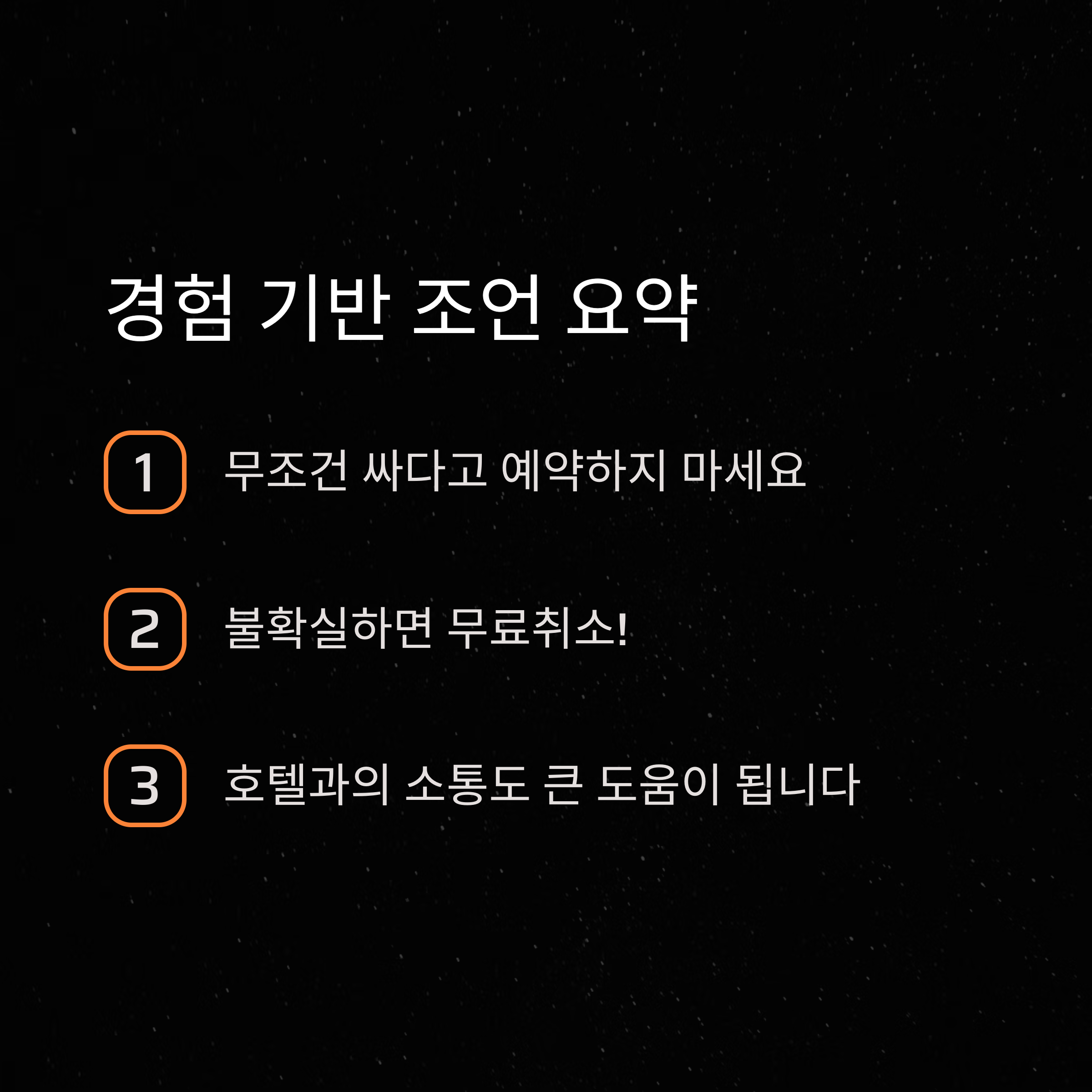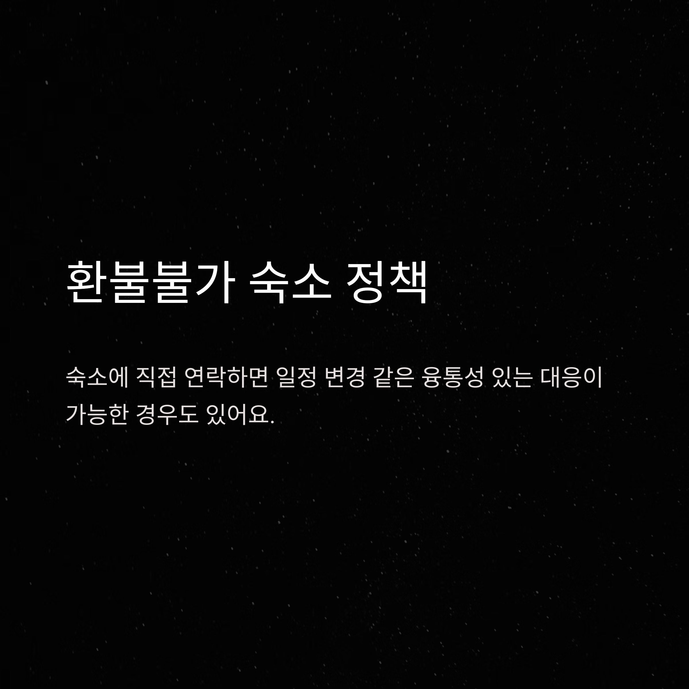 | 숙소 취소 | 환불불가 조건이더라도, 호텔 측과 협의 시 일정 변경 가능 |