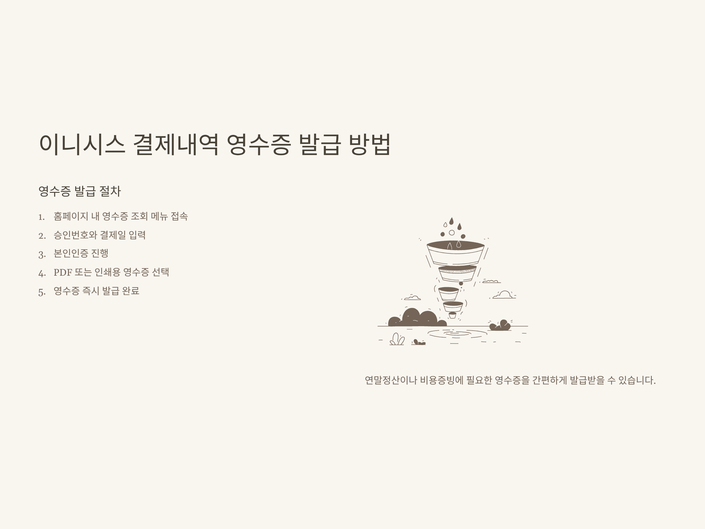 저는 연말정산, 비용 증빙, 환불 요청 등으로 이니시스 결제 영수증이 꼭 필요할 때가 많았는데, 영수증 발급도 홈페이지에서 쉽게 할 수 있었습니다. 실제로 직접 해보니 복잡할 것 같아도, 승인번호와 결제일만 입력하면 바로 출력이 가능해서 인상적이었어요.