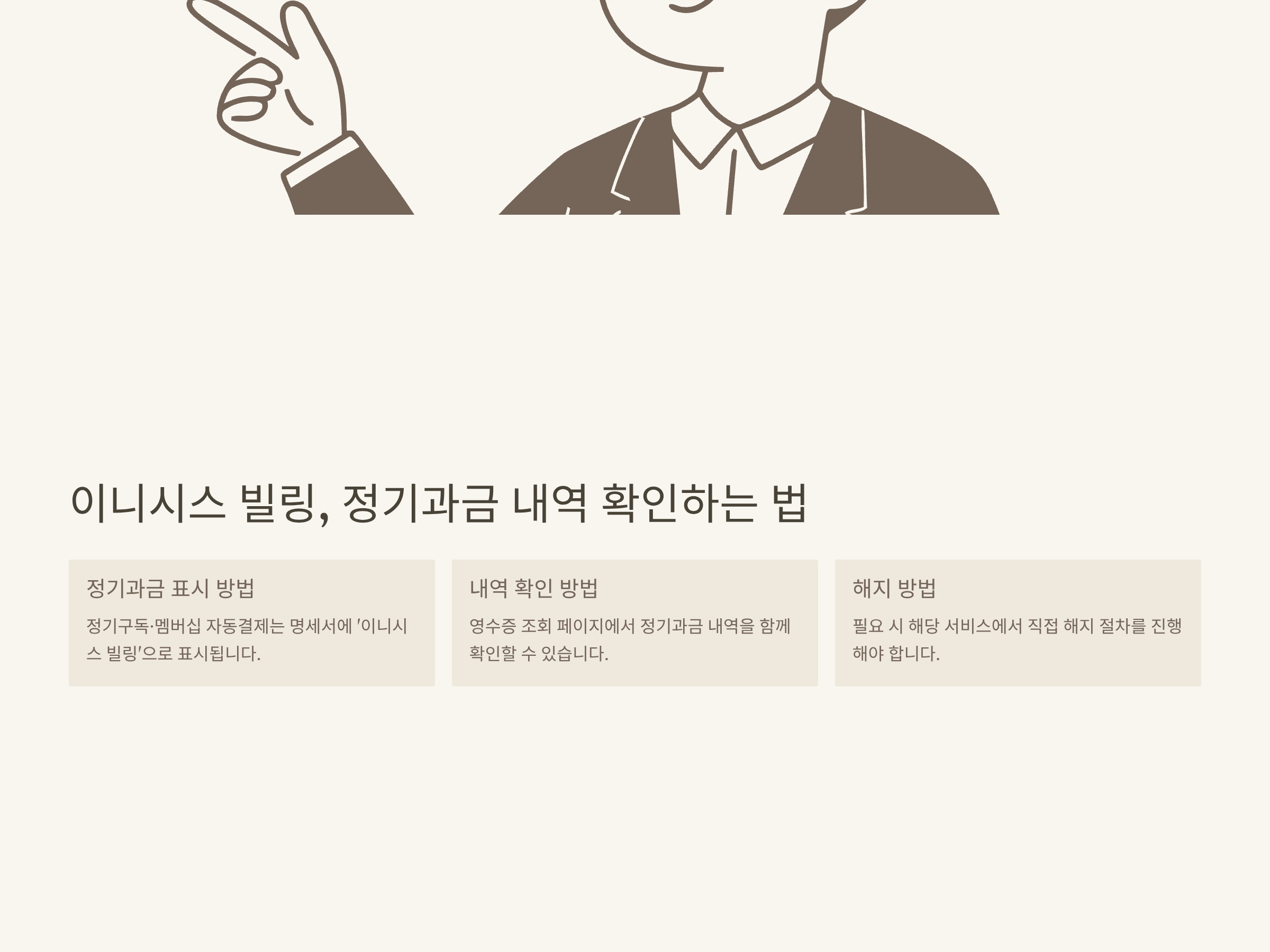 정기적으로 결제가 빠져나가는 ‘이니시스 빌링’, ‘이니시스 정기과금’도 온라인 쇼핑이나 멤버십 구독을 하다 보면 종종 접하게 됩니다. 저 역시 넷플릭스, 왓챠, 각종 교육 사이트 정기결제 때 “KG이니시스 빌링”이라는 문구를 명세서에서 자주 확인했는데, 혹시라도 모를 이중결제나 자동결제 해지를 위해 내역 확인이 정말 중요했습니다.