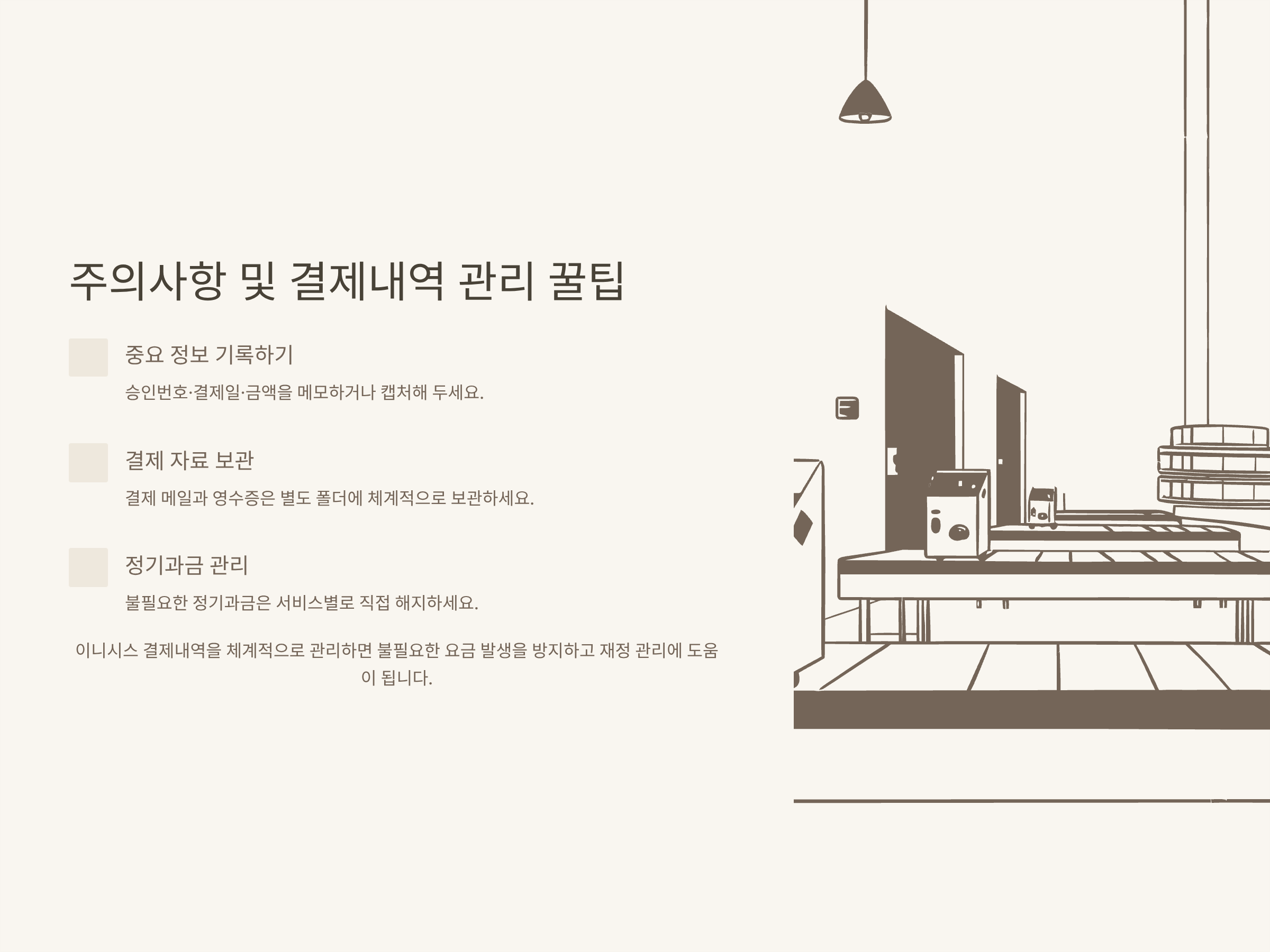 이니시스 결제내역 관리에서 가장 중요한 건 승인번호, 결제일, 메일 등 증빙 자료를 잘 챙기는 겁니다. 저도 예전에 정기결제 해지나 환불 때 관련 정보를 놓쳐 곤란했던 적이 있었는데, 몇 가지 실전 팁을 남겨봅니다.