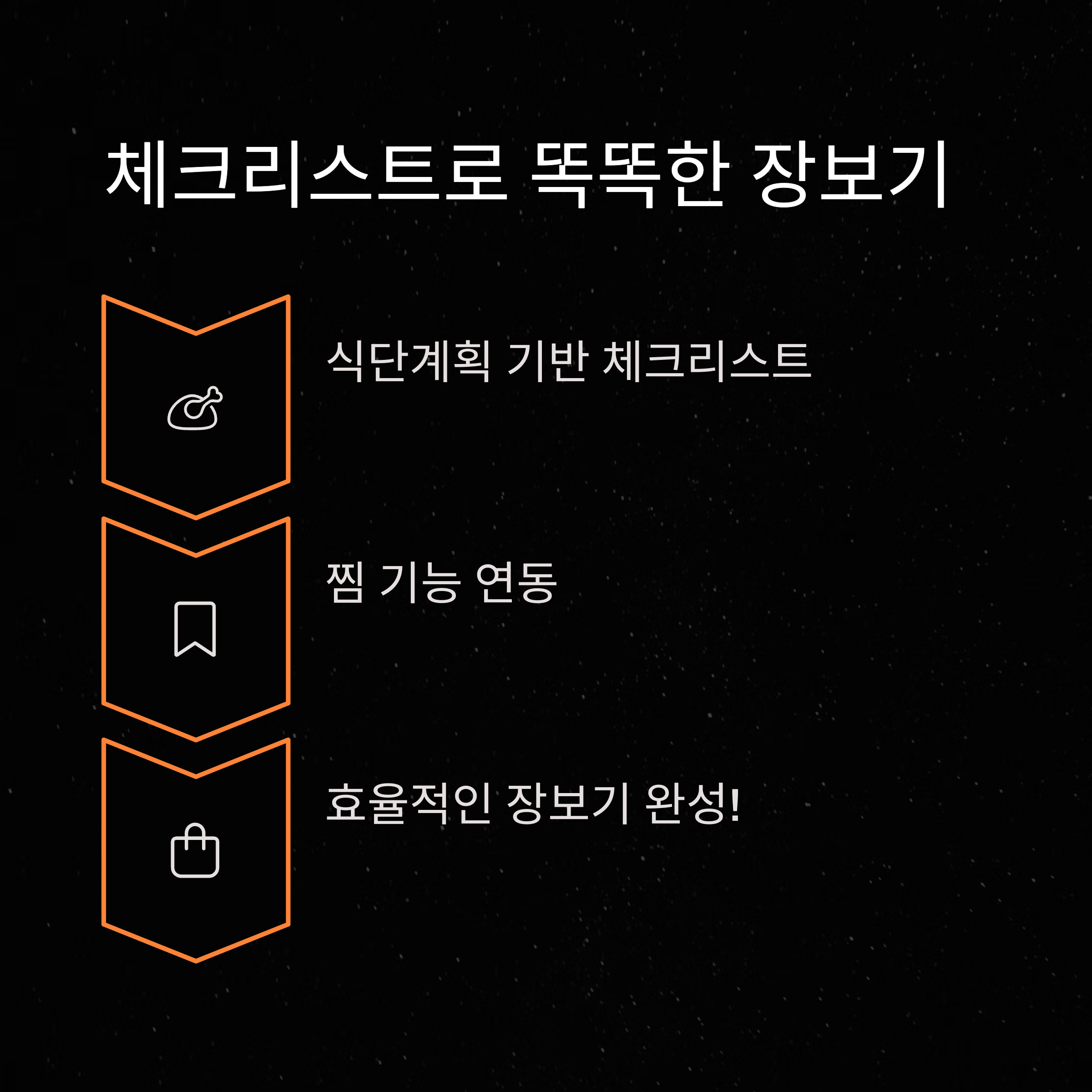 - 이번 주 식단계획 기반 장보기 리스트 작성
