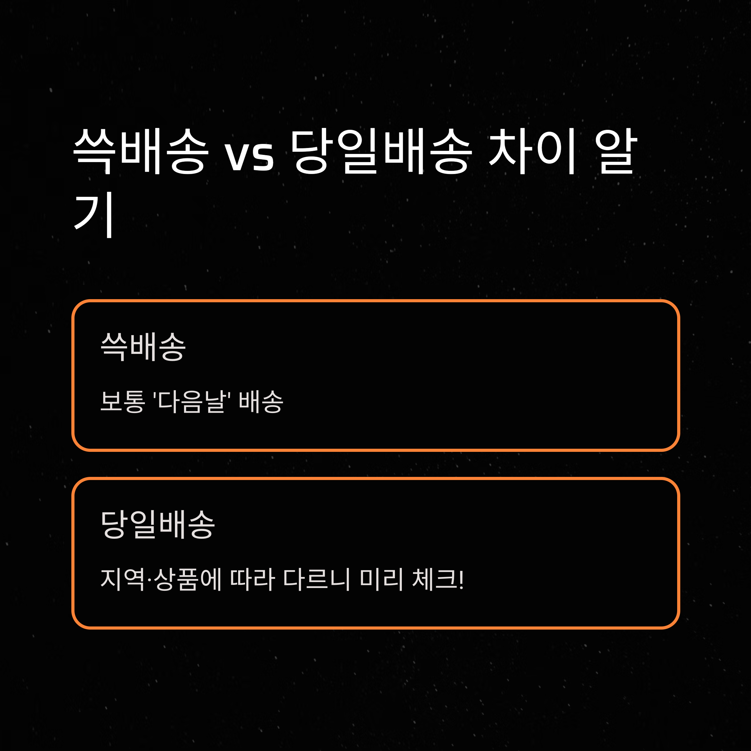 저도 처음엔 ‘쓱배송이 당일배송 아닌가?’ 했는데, 알고 보니 조금 달랐습니다. 쓱배송은 기본적으로 다음날 배송이 원칙이고, 지역에 따라 ‘오늘배송(당일배송)’이 가능한 상품도 있어요.
