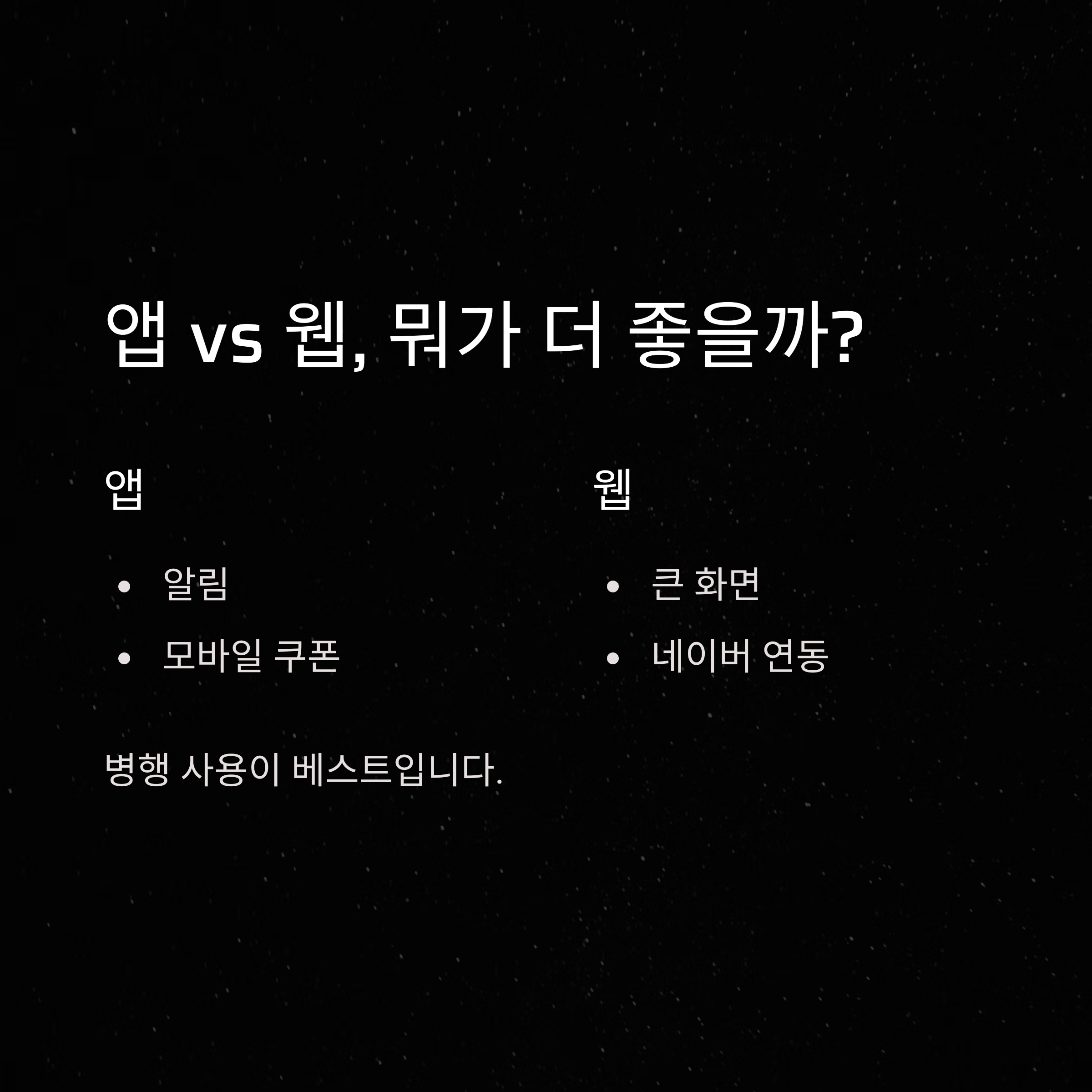 두 가지를 병행해서 사용하는 게 베스트인 것 같아요. 저는 주로 앱에서 알림 받고, 웹에서 큰 장보기를 마무리합니다.