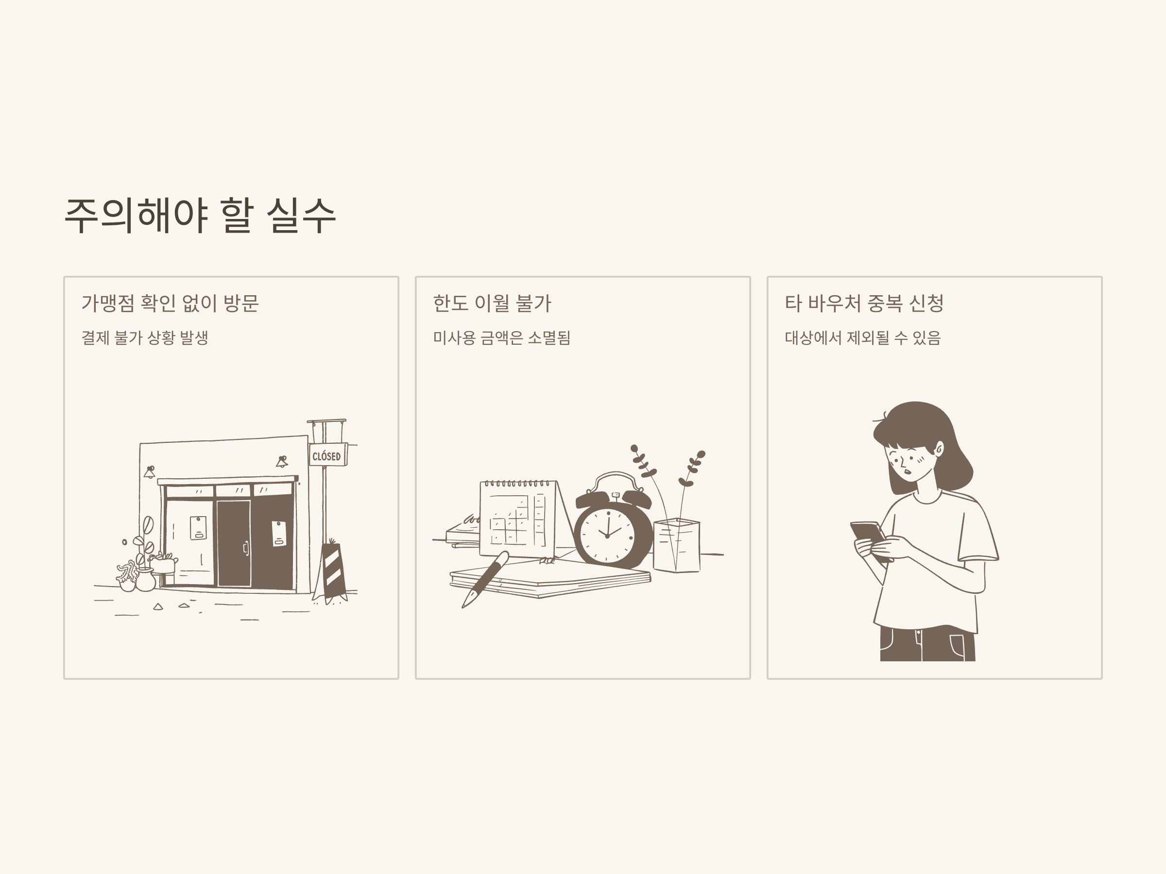 | 가맹점 미확인 | 결제 불가, 헛걸음 방지 위해 필수 확인 |