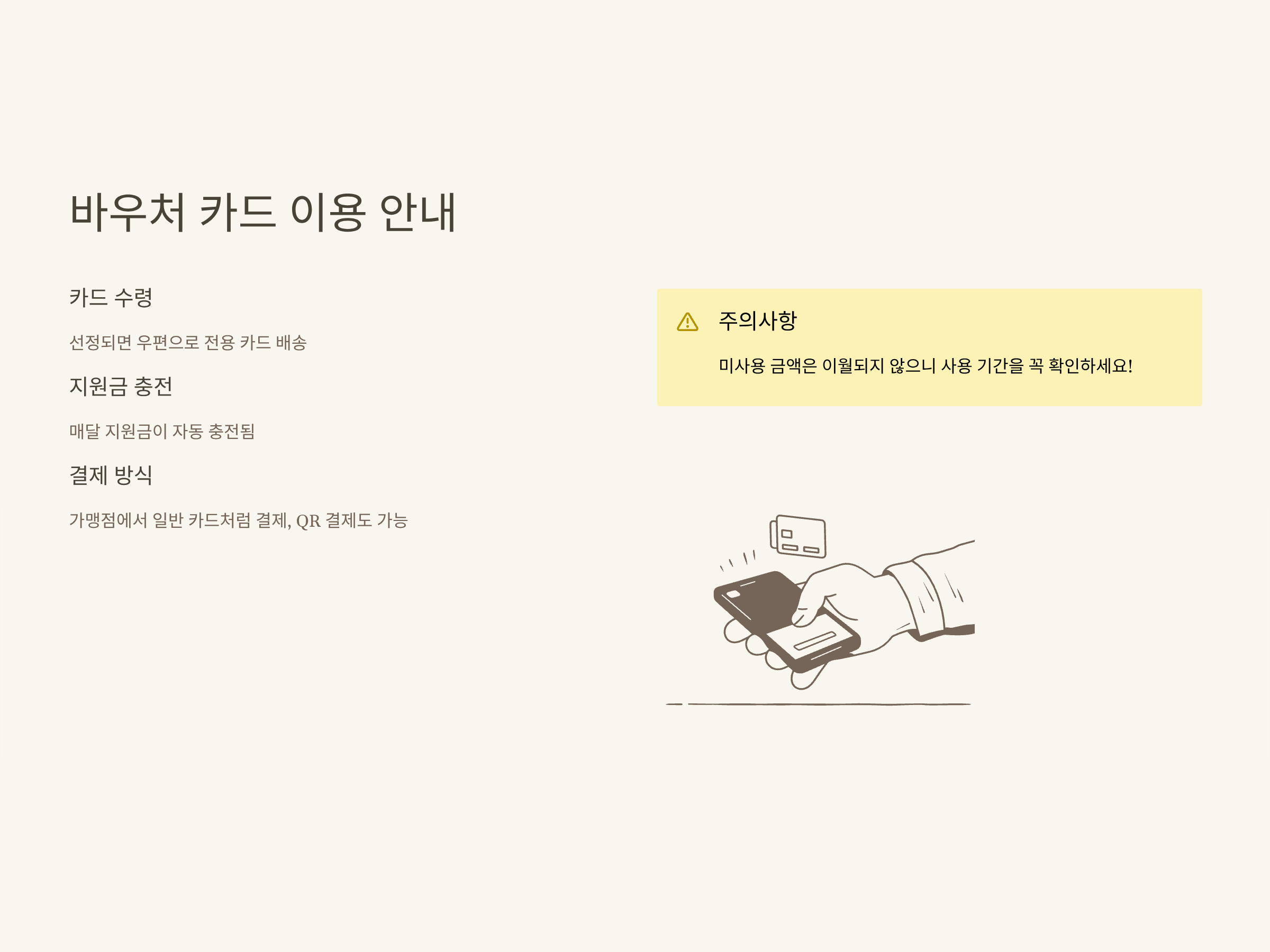 | 이용 방법 | 가맹점 바우처 카드 결제 |