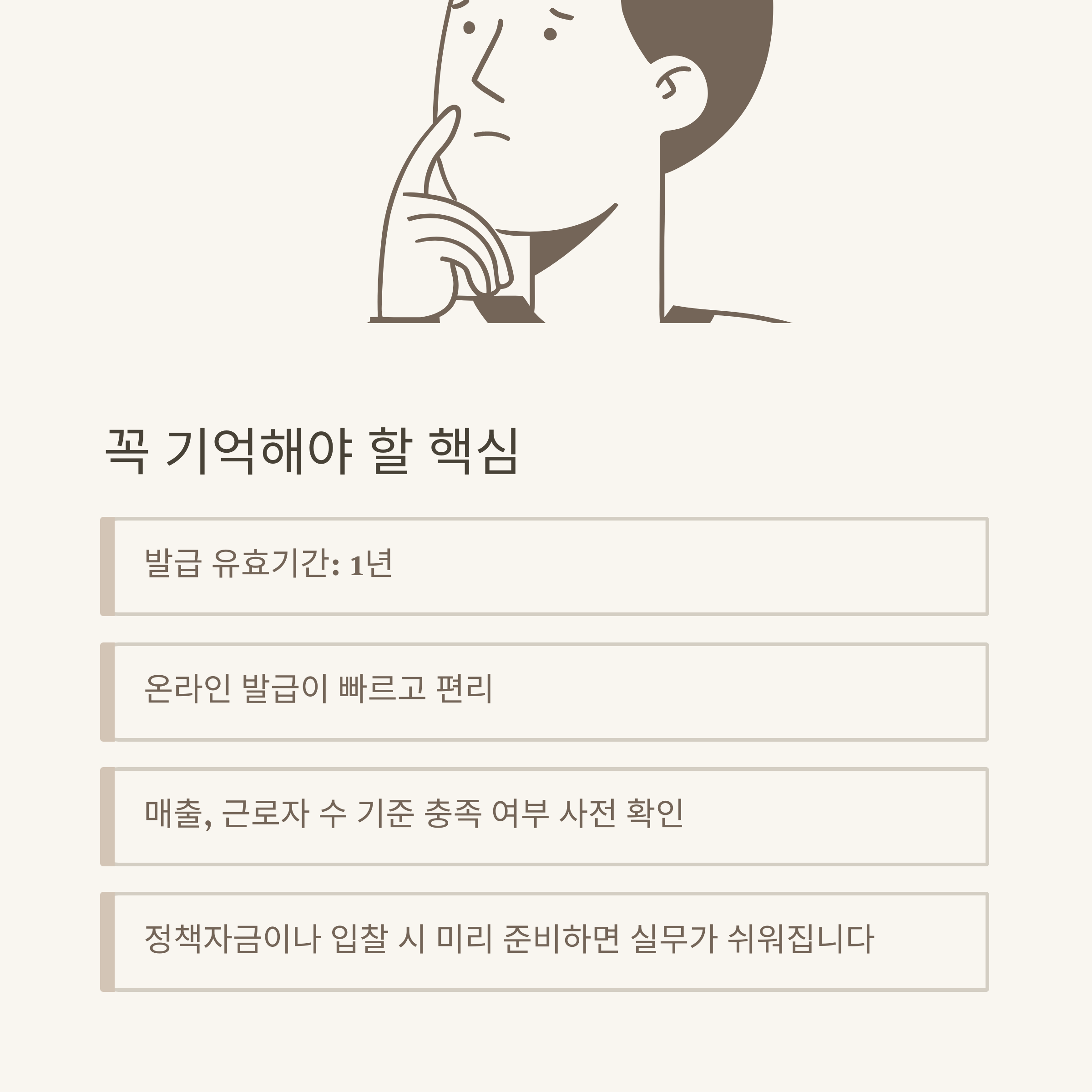 | 주요 발급처 | 중소기업현황정보시스템, 소상공인시장진흥공단 등 |
