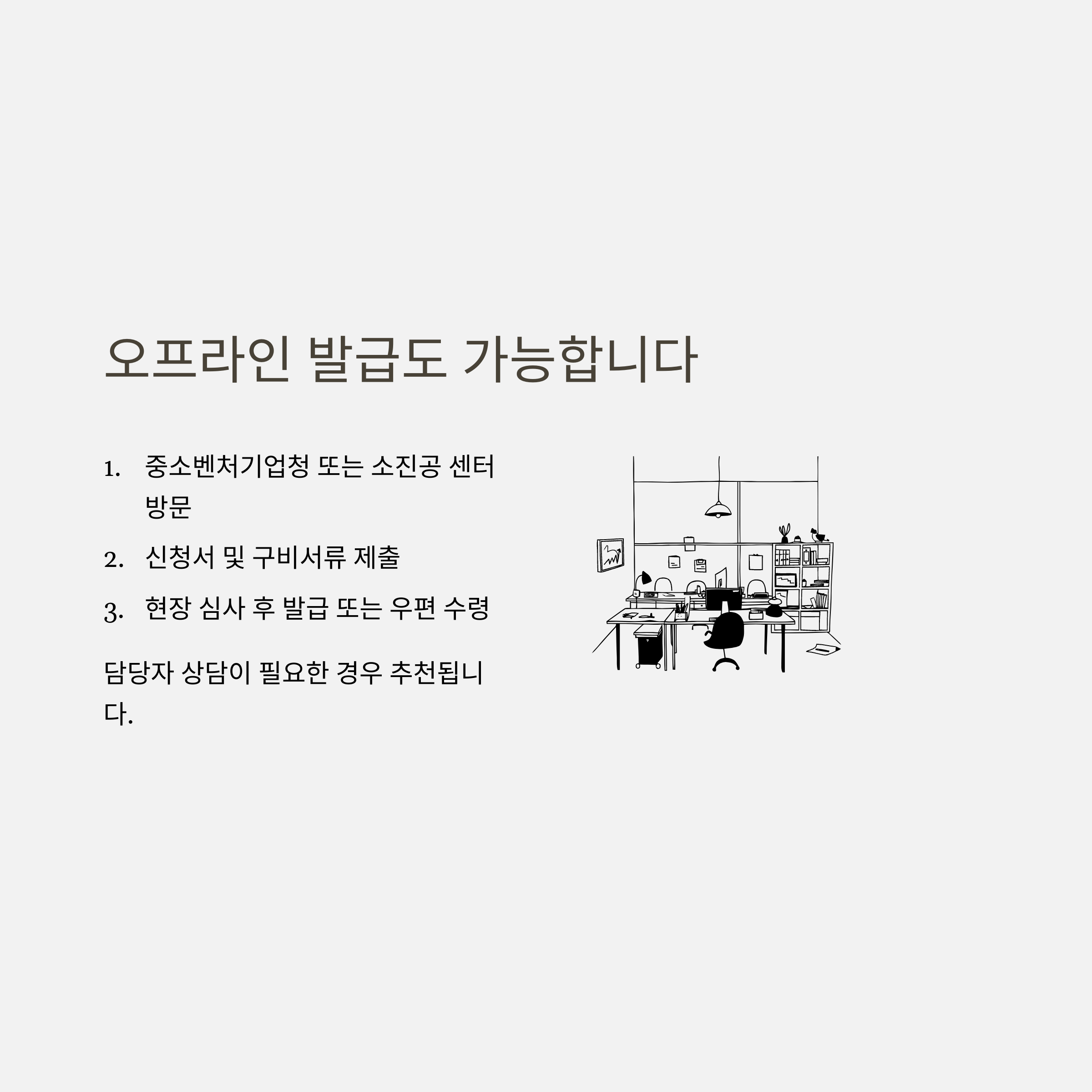 오프라인 신청 시에는 담당자와 직접 상담이 가능해서, 추가적으로 궁금한 점이나 보완서류 안내를 바로 받을 수 있는 장점이 있었습니다. 준비 서류는 온라인과 거의 동일하며, 현장에서 바로 발급받는 경우도 있었습니다.