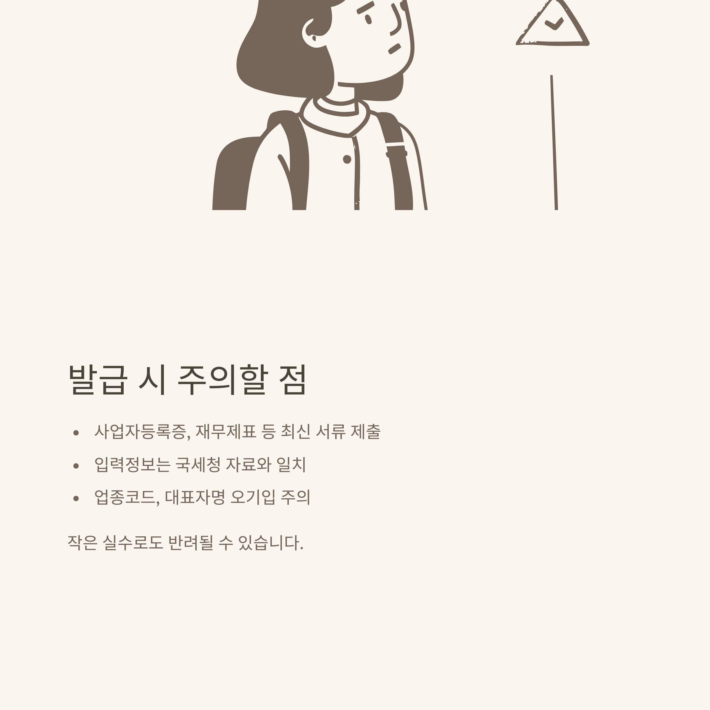 - 대표자 성명, 사업장 소재지 등 오타·누락 주의