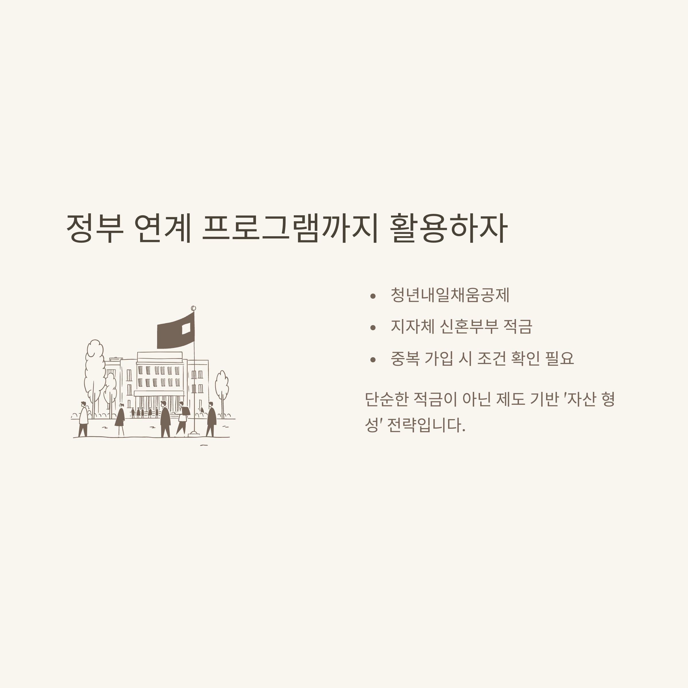 - 지자체 청년 적금/신혼부부 적금 등 다양한 연계 프로그램