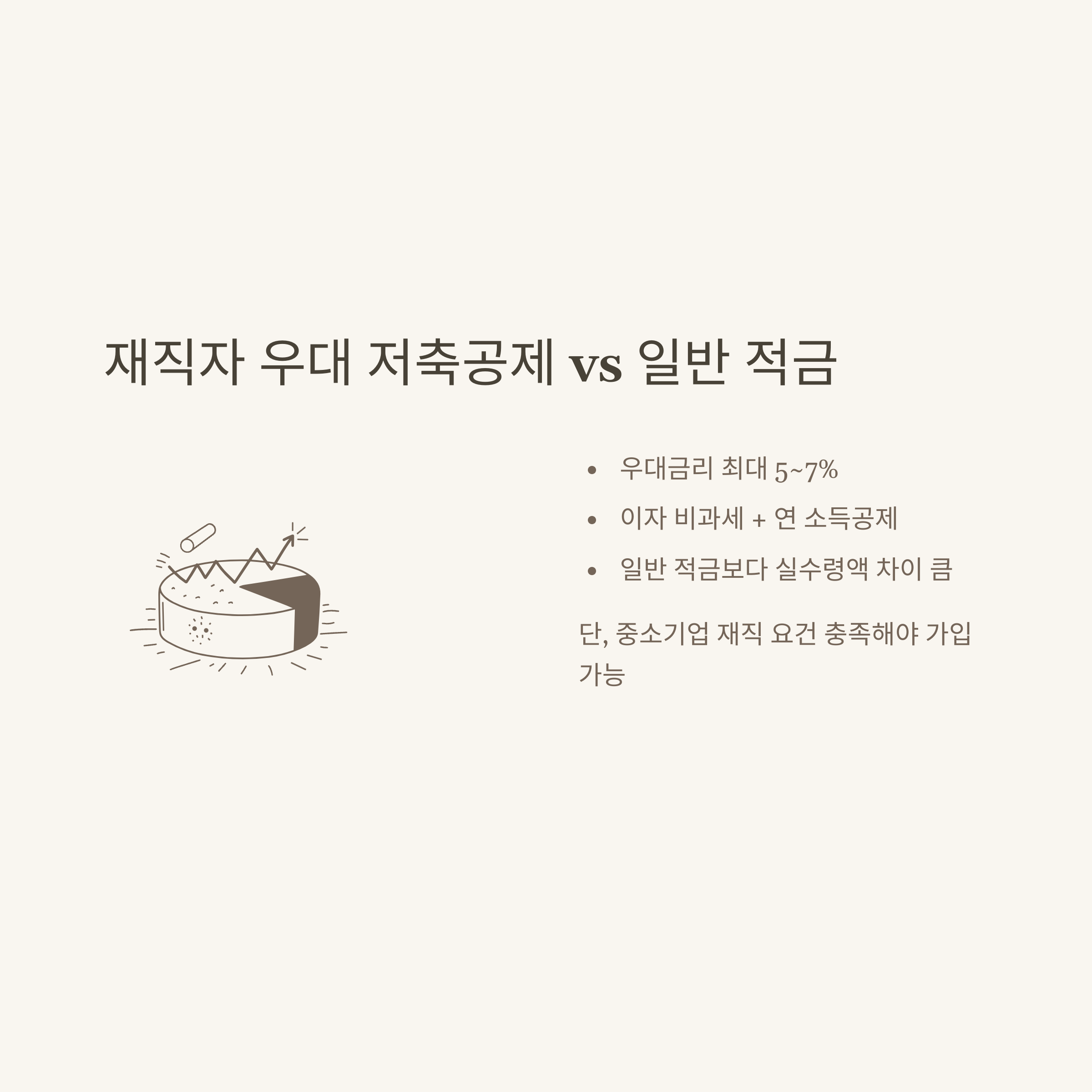 - 재직자 우대 저축공제: 재직자 대상 고금리·비과세 혜택