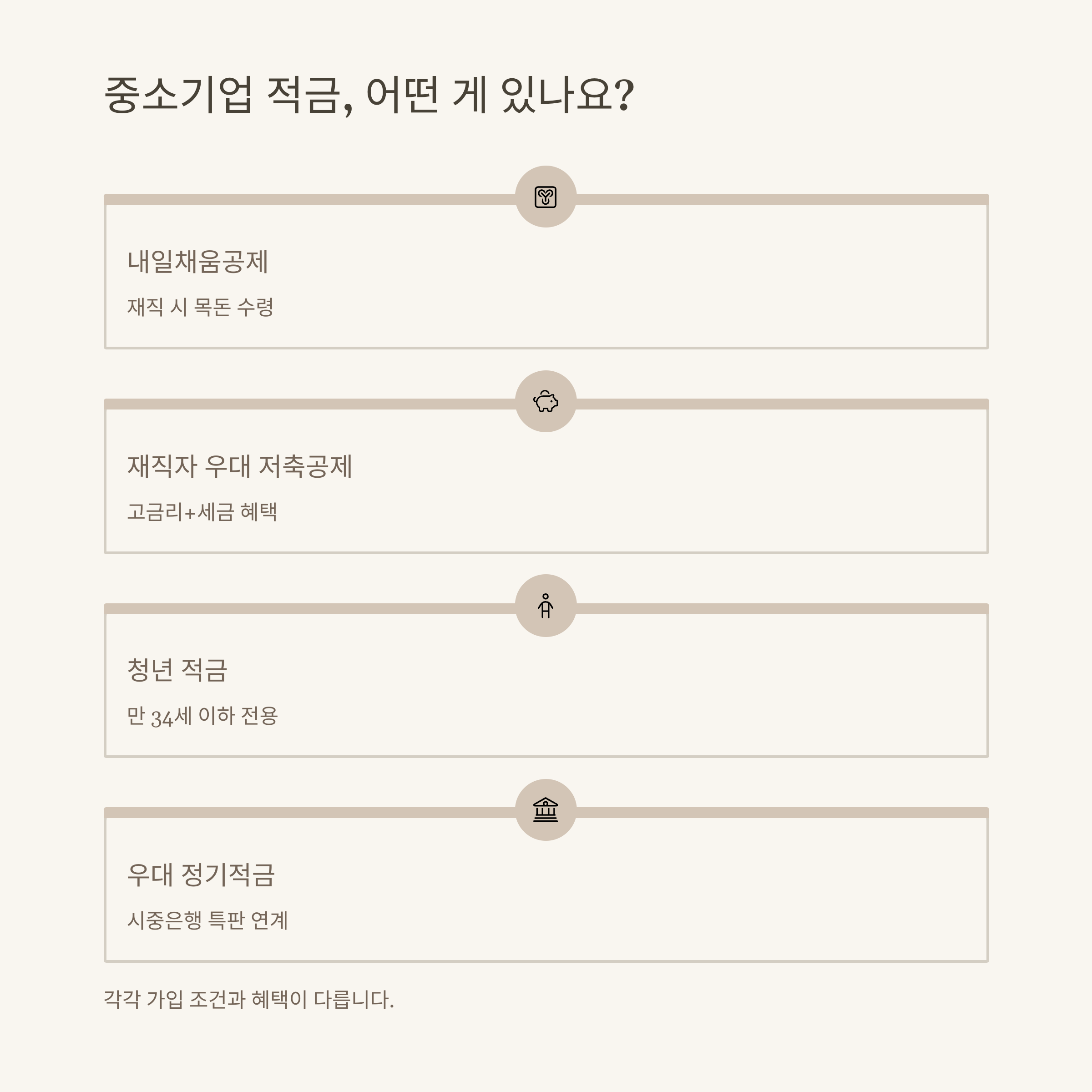 중소기업 적금, 내일채움공제, 청년 적금, 재직자 우대 저축공제 등 다양한 상품을 실제 경험과 공식 정보를 바탕으로 쉽게 비교하고, 나에게 맞는 선택 방법과 실전 팁까지 안내드립니다.